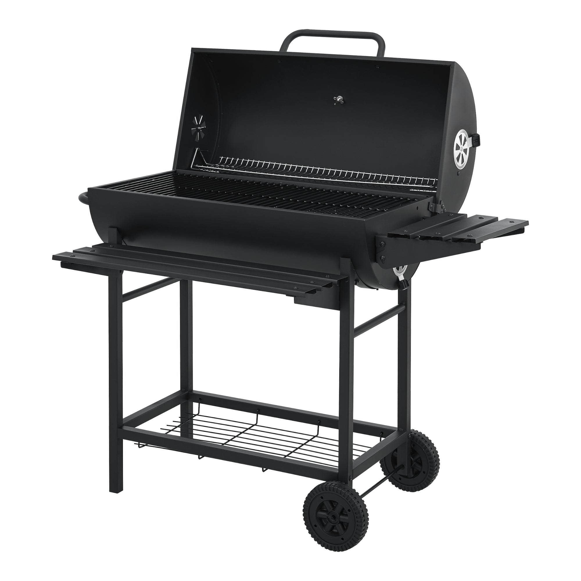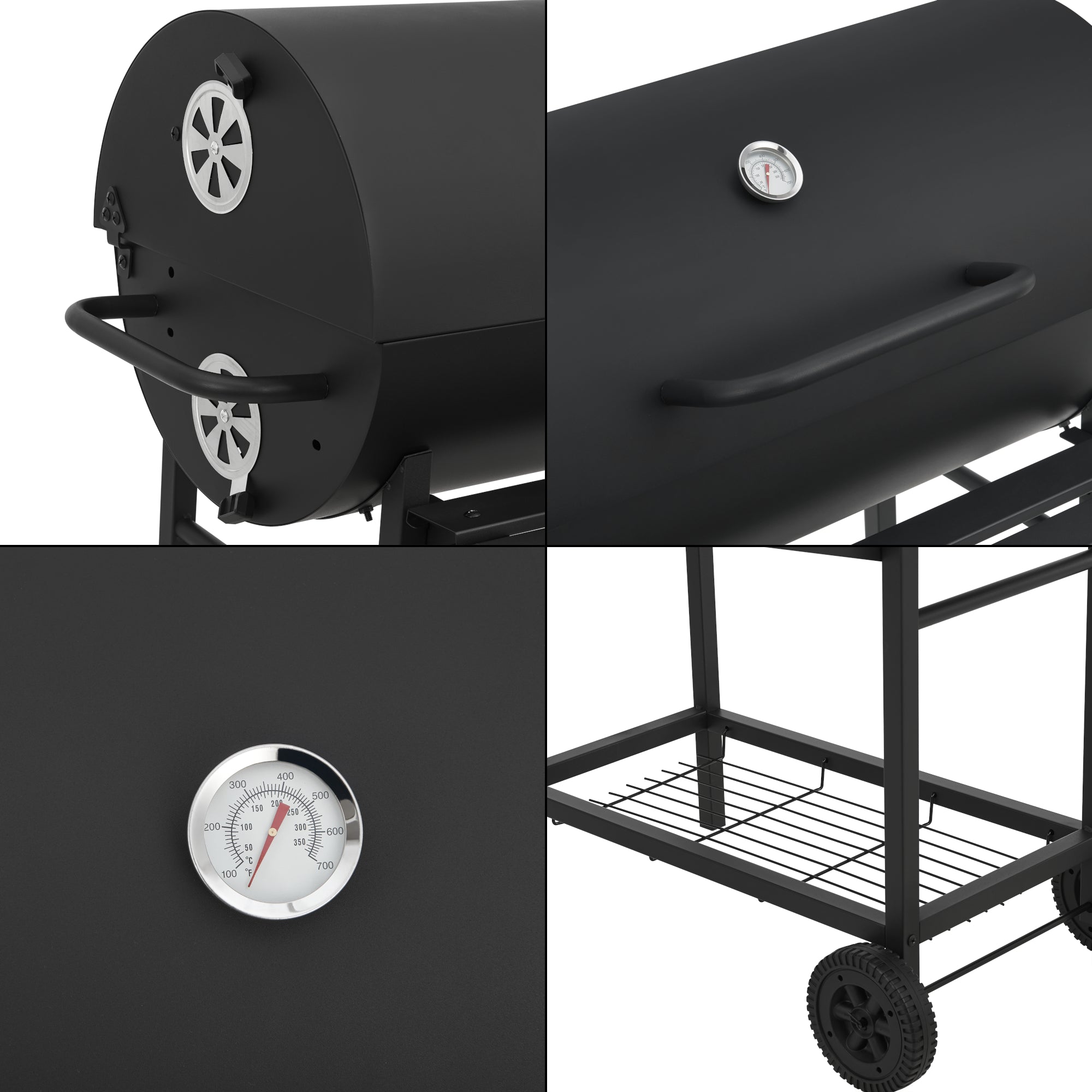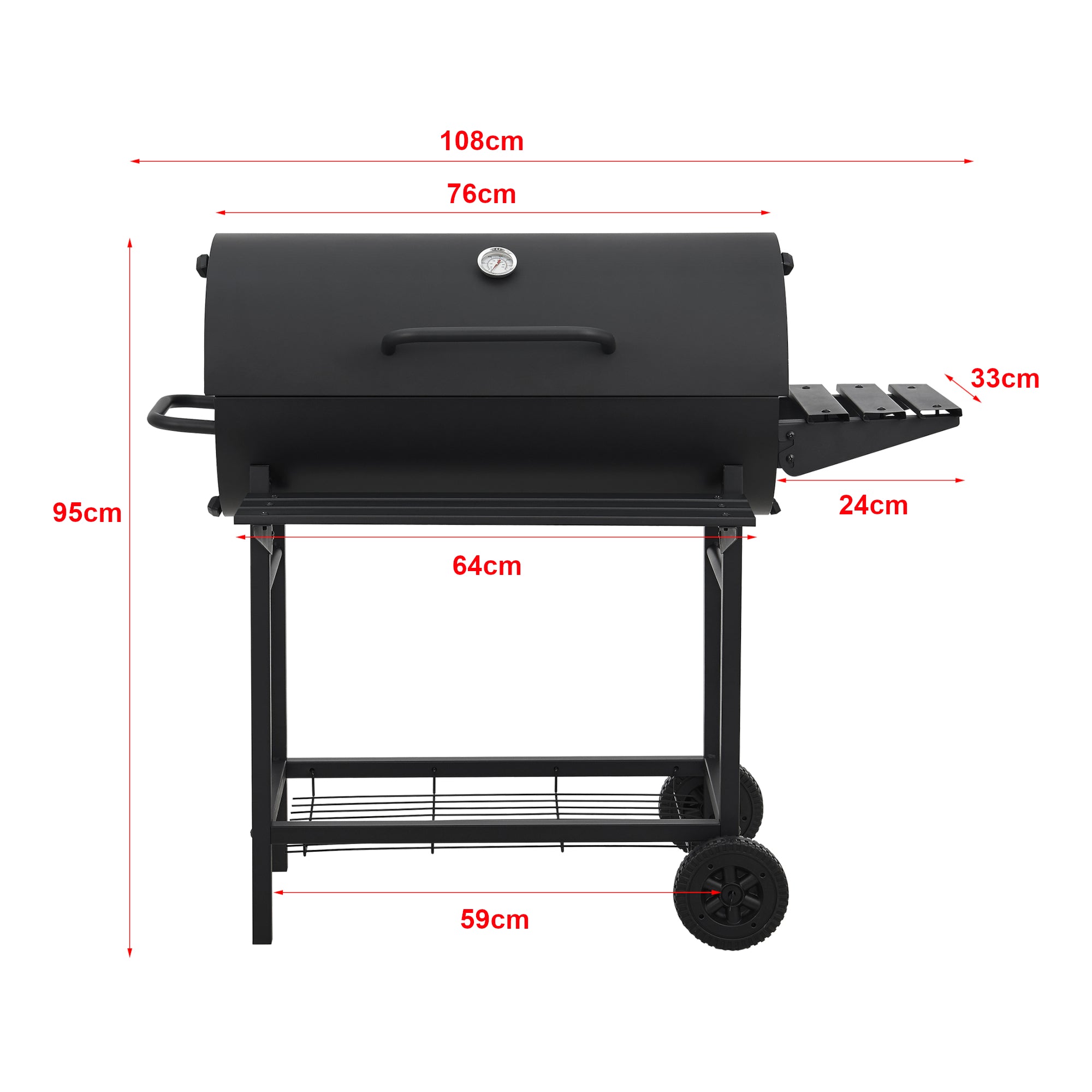 Unser Holzkohlegrill vereint klassisches Design mit praktischen Features, wie eine geräumige Grillfläche und integrierte Ablageflächen für Grillzubehör. Mit seinen großen, stabilen Rädern lässt sich der Grill leicht von Ort zu Ort bewegen, perfekt für Ihre Gartenpartys oder Familientreffen.