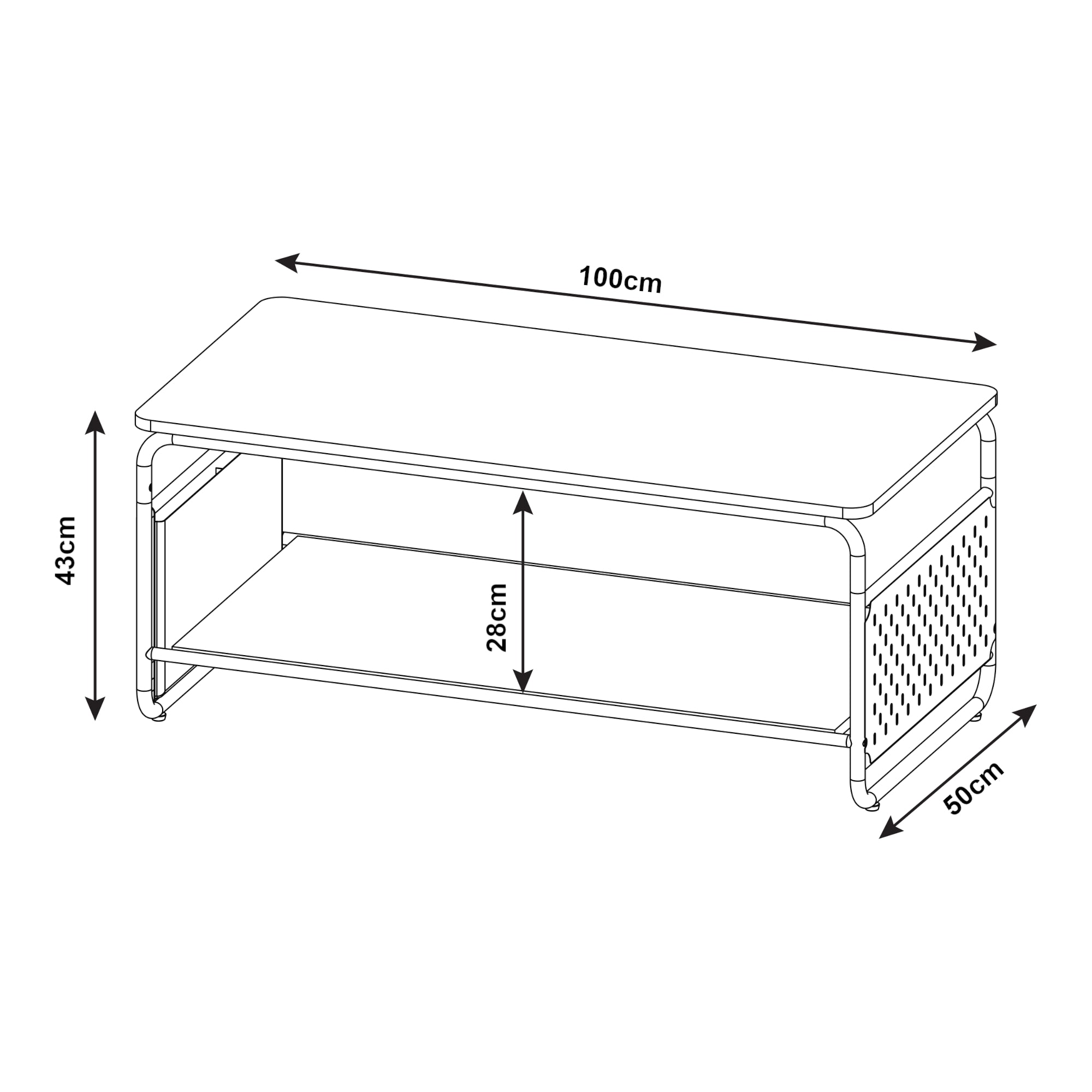 - Abstand von der unteren Ablage zur Tischplatte: 28 cm