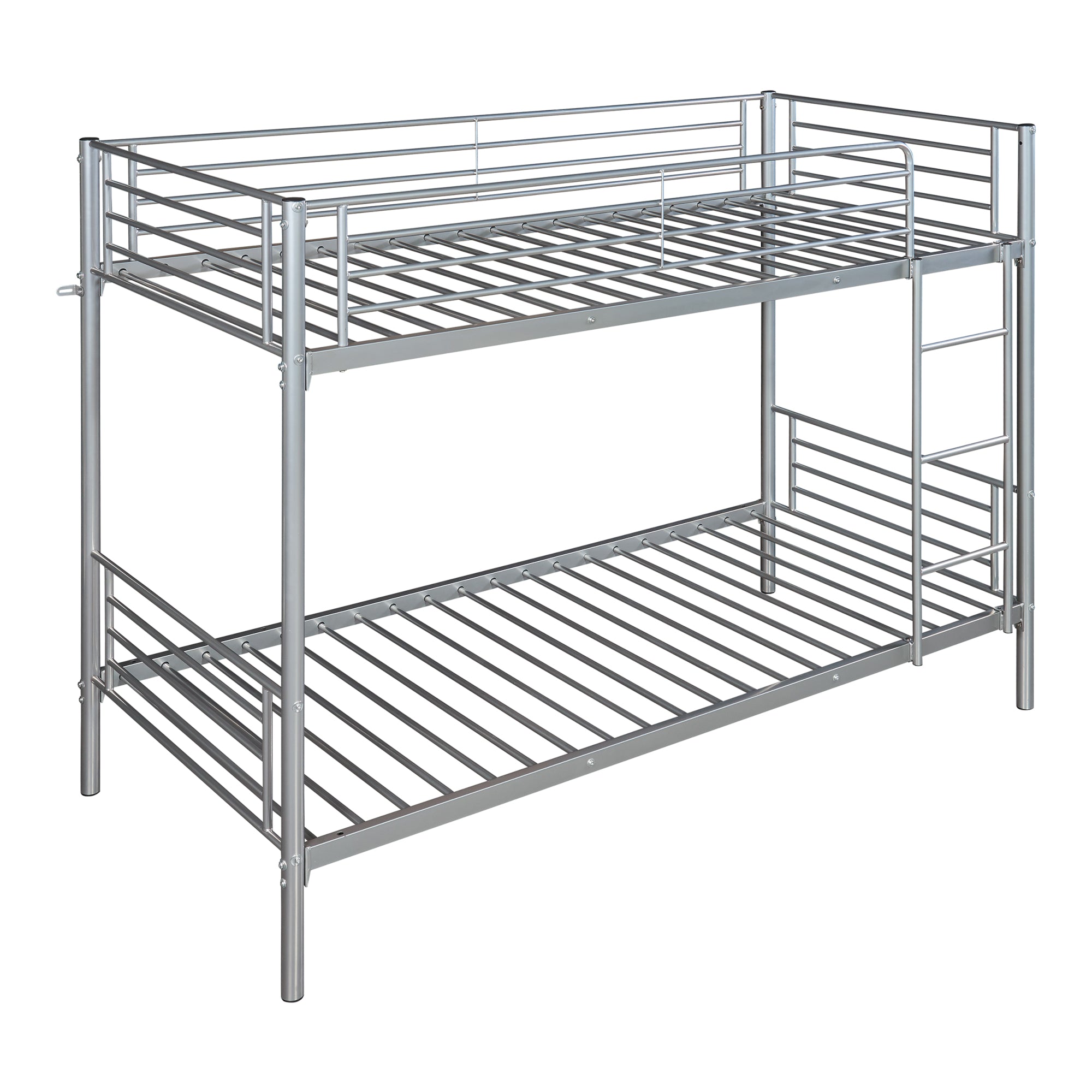 Für den Zugang zur oberen Liegefläche ist eine fest integrierte Leiter vorhanden, die sicher und einfach zu benutzen ist. Zusätzlich verfügt das Stockbett über eine Absturzsicherung an der oberen Etage, die für Sicherheit während des Schlafens sorgt und Unfälle verhindert.