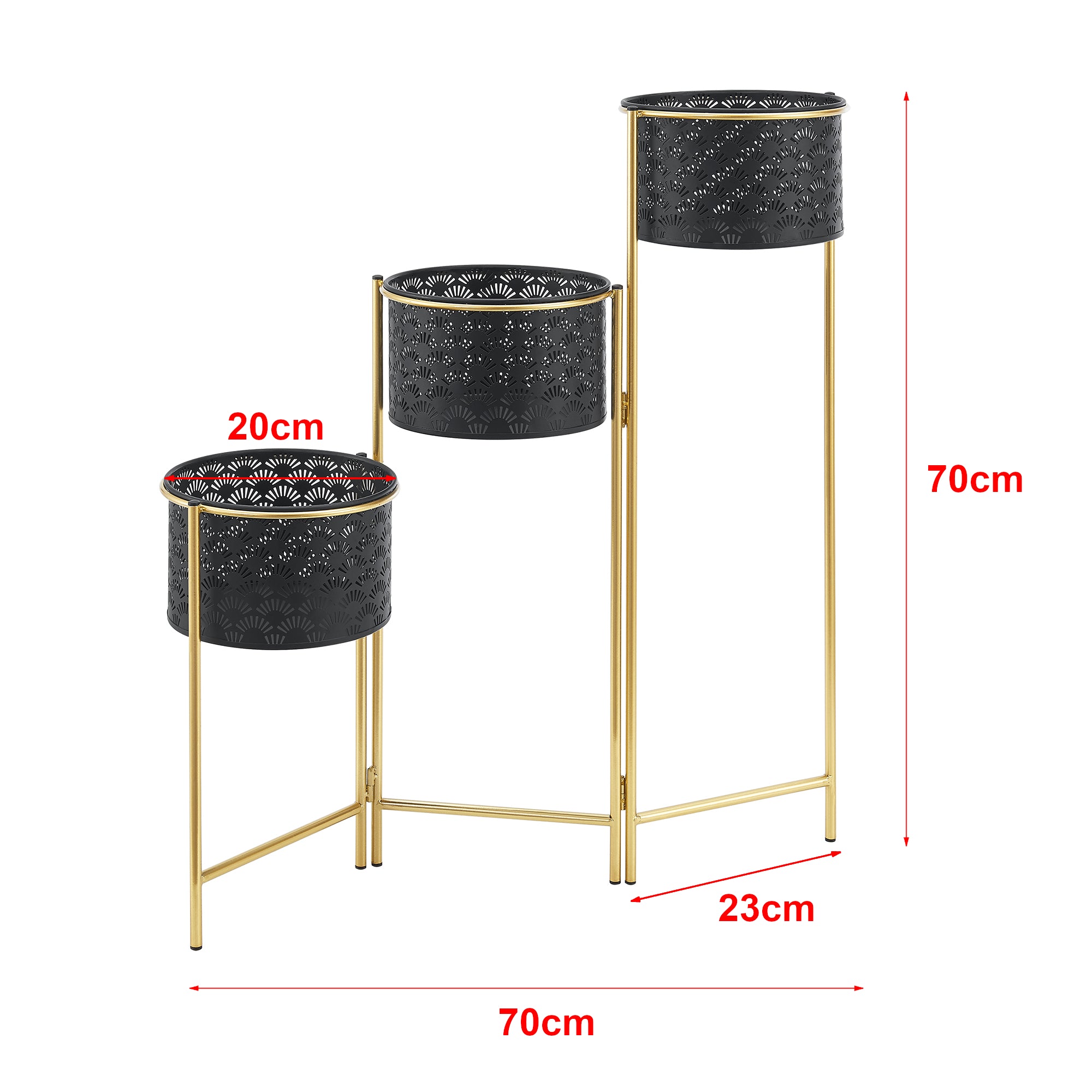Dieser ausgefallene Pflanzständer mit 3 Pflanztöpfen aus Metall ist klappbar und dadurch sehr platzsparend. Durch sein zeitloses und dekoratives Design ist er ein echter Hingucker in Ihrem Wohnbereich.