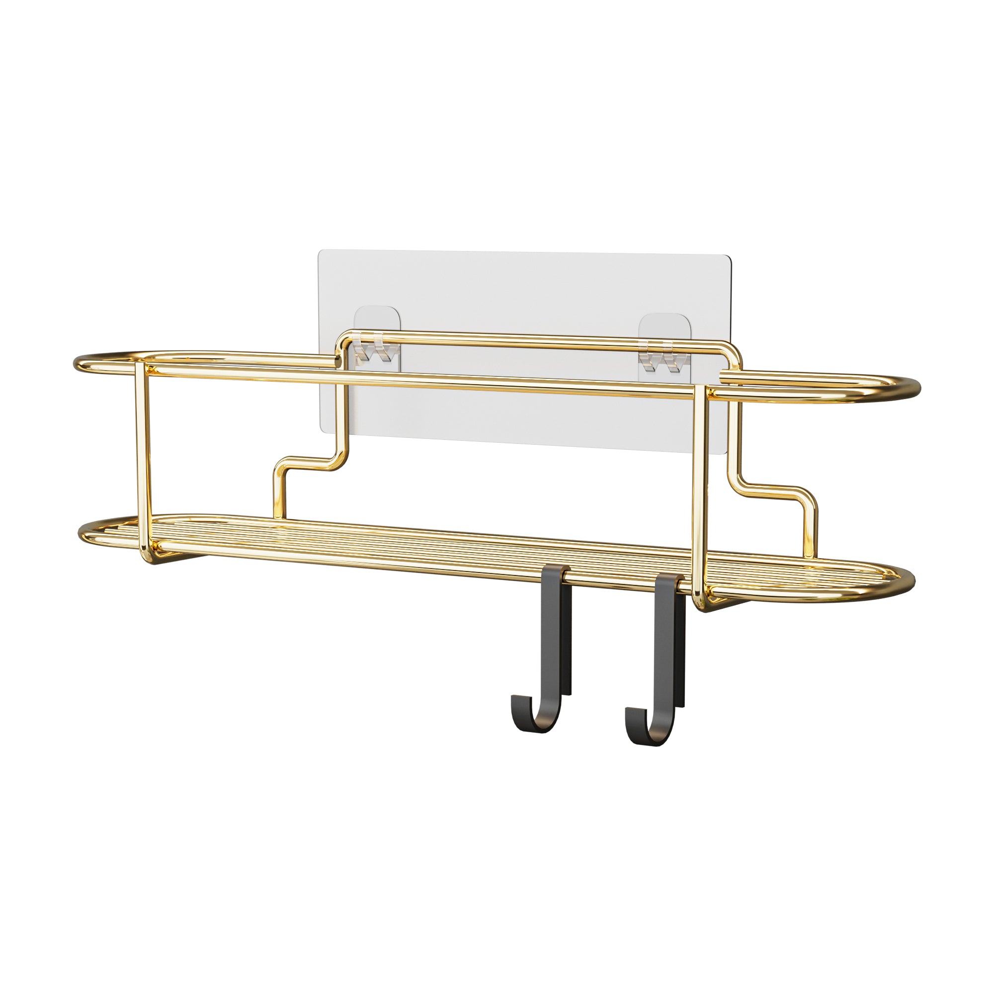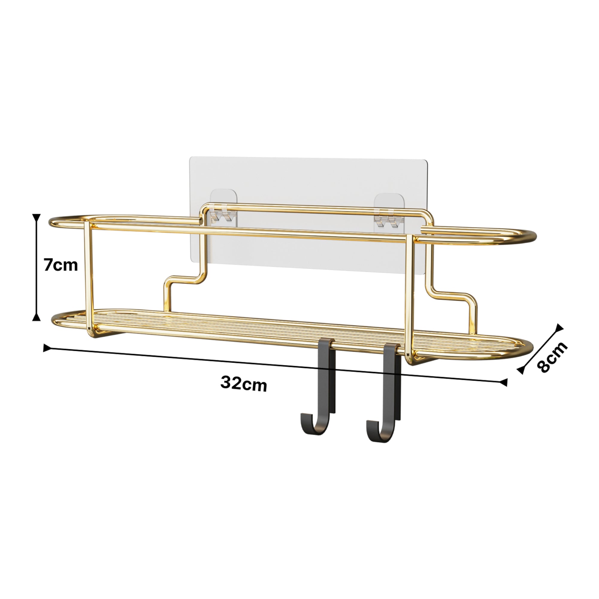 Mit seiner praktischen Ablagefläche und zwei Haken können Sie alles Wichtige griffbereit aufbewahren. Dank der selbstklebenden Folie lässt es sich schnell und ohne Bohren an der Wand befestigen.