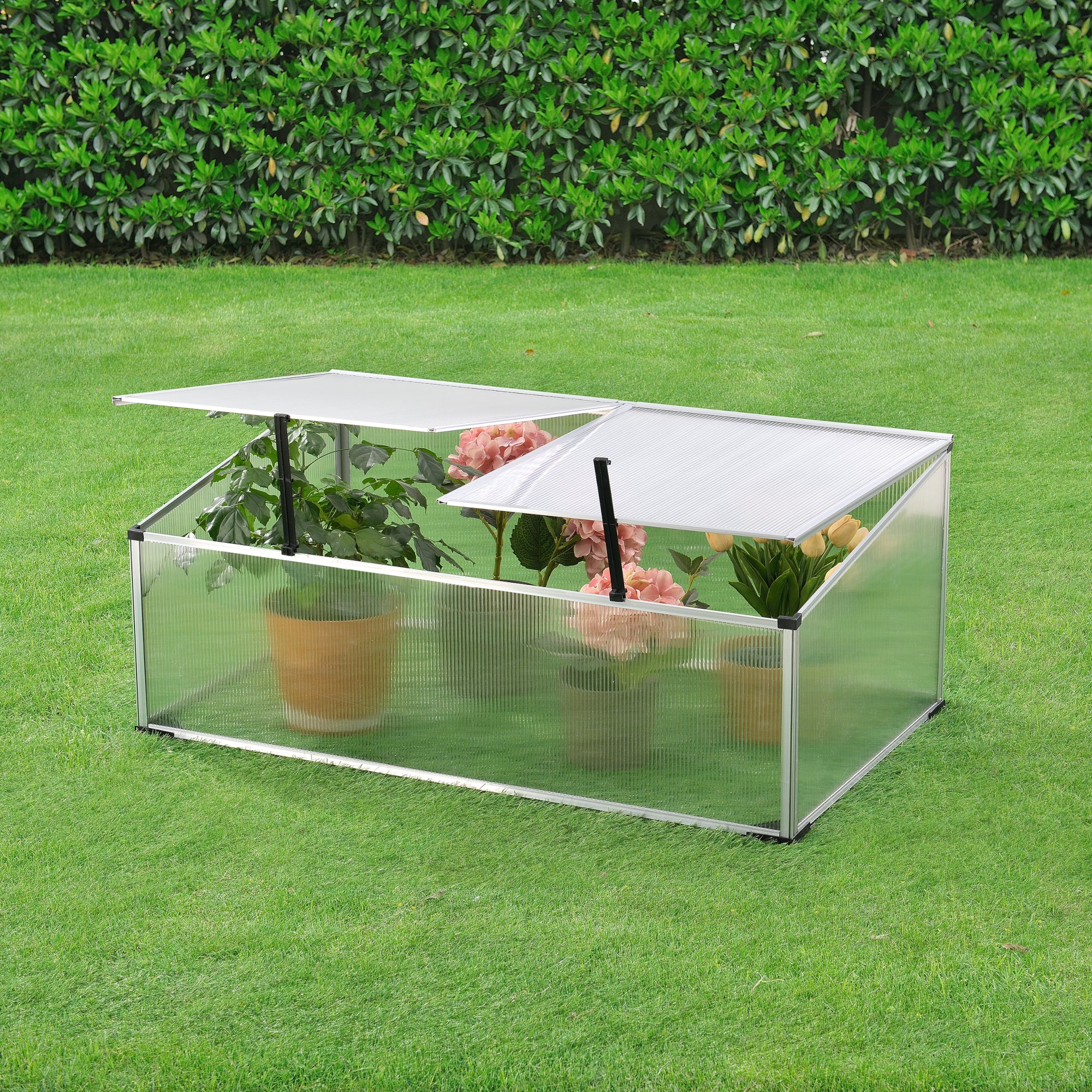 Das Mini Gewächshaus lässt sich schnell und einfach auf- und abbauen. Die lichtdurchlässigen Hohlkammerplatten sorgen für ausreichend Licht und das aufklappbare Dach für eine gute Belüftung. Außerdem ermöglicht der kleine Pflanzkasten Ihnen bereits in kalten Monaten eine Aufzucht Ihrer Sprösslinge und schützt diese darüberhinaus vor Wind und Wetter.