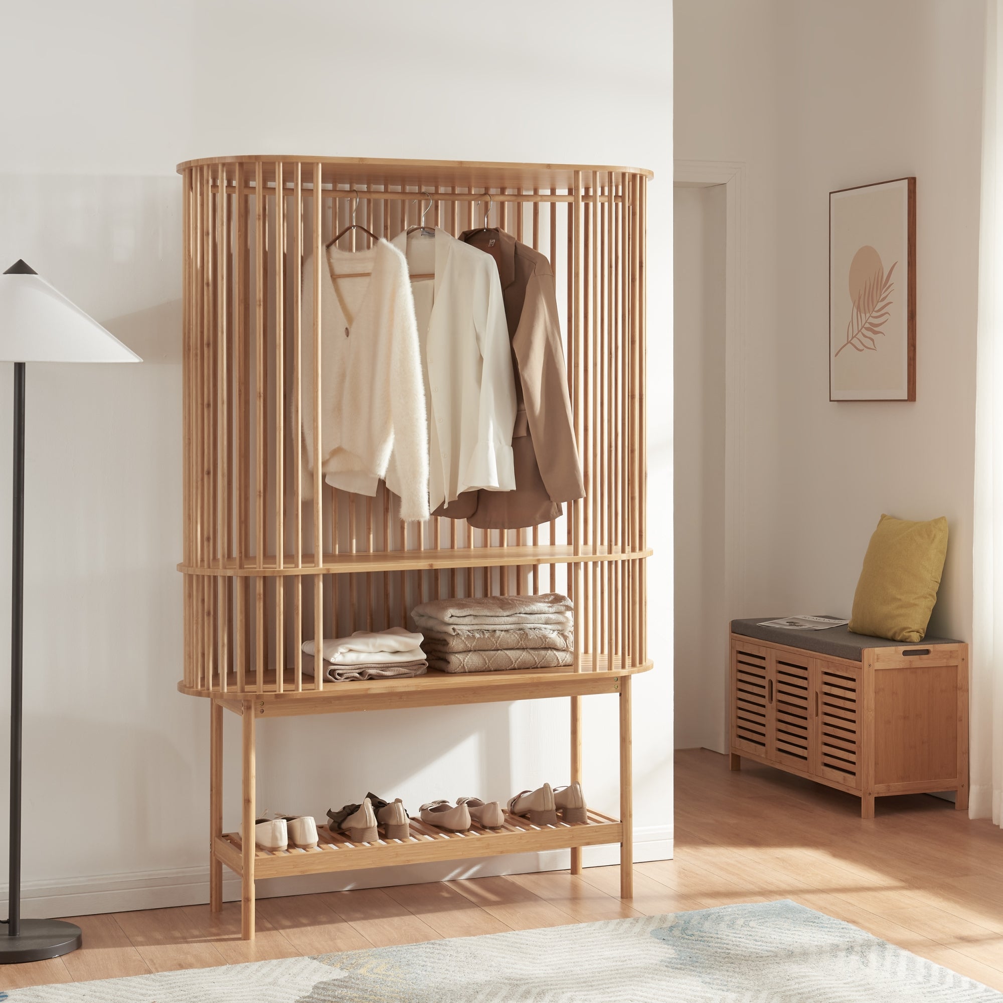 Die Kleiderstange bietet ausreichend Platz für Jacken, Mäntel, Schals und mehr. Das Ablagefach unter dem Hängeregal eignet sich ideal für Decken, Handtücher, T-Shirts und Accessoires.