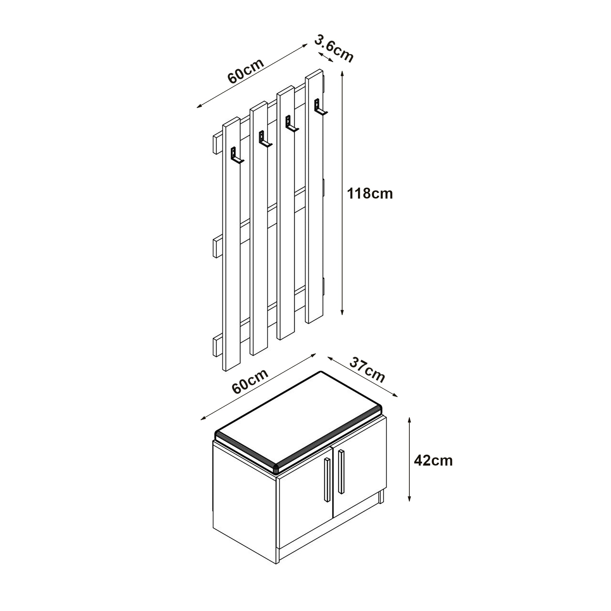 - Schuhbank (HxBxT): 42 x 60 x 37 cm