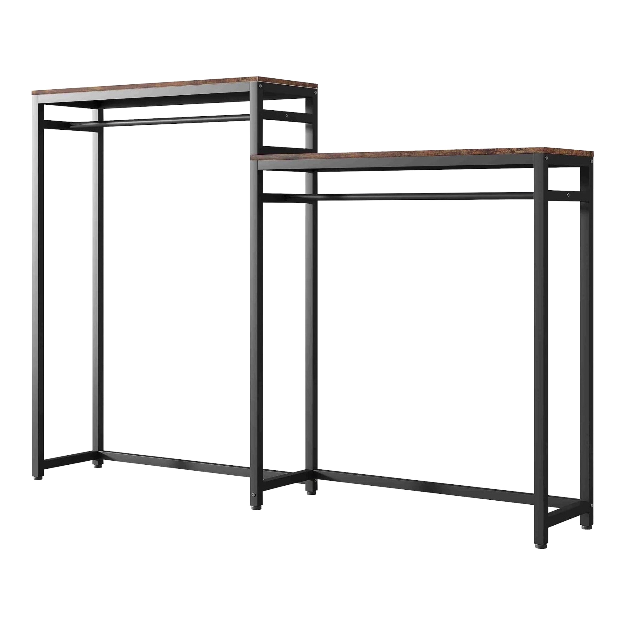 Beide Teile verfügen über eine Kleiderstange sowie eine großzügige Ablagefläche. Sie werden geradlinig nebeneinander aufgebaut.