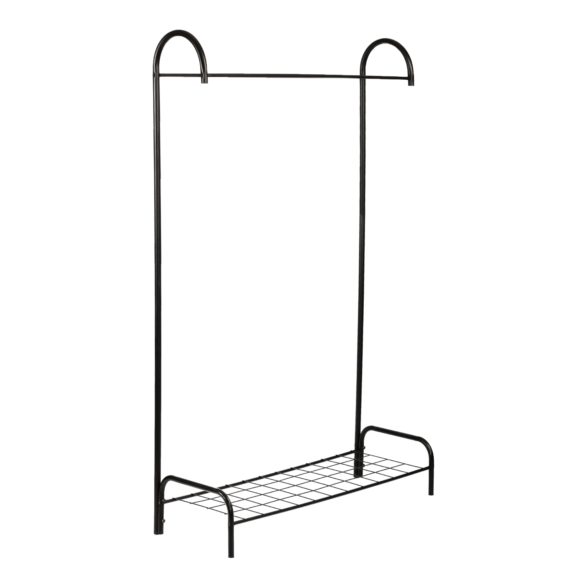 Der praktische und stabile Kleiderständer lässt sich schnell und einfach aufbauen. Er verfügt über eine Garderobenstange und eine Ablage für bspw. Schuhe oder andere Gegenstände.