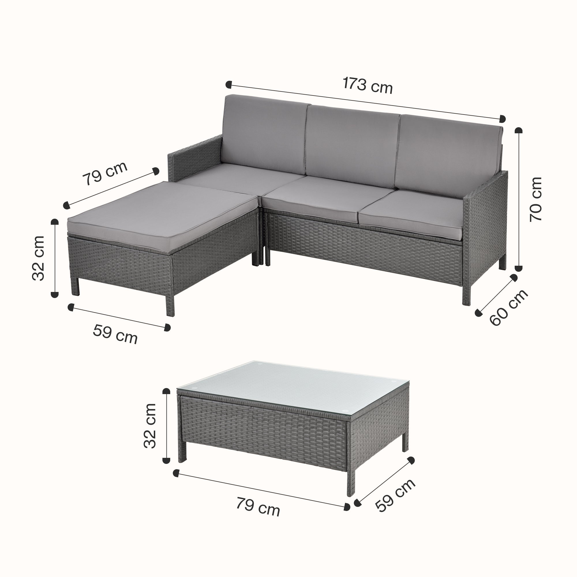 - 3-tlg. Loungeset bestehend aus Sofa, Hocker und Tisch