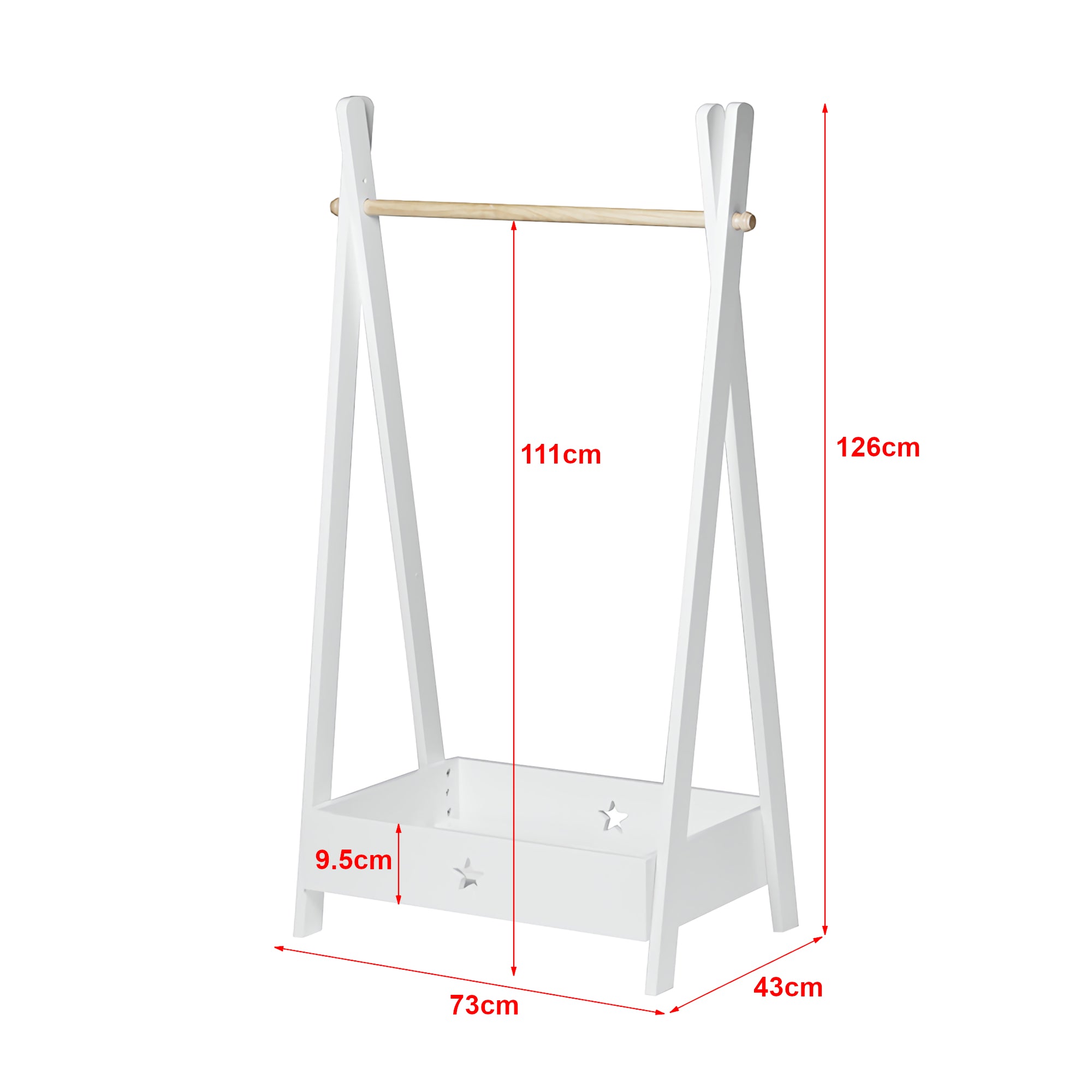 Die ideale Ergänzung für jedes Kinderzimmer - unsere Kindergarderobe mit Staufach ermöglicht es Ihnen, Ihre Lieblingsstücke immer griffbereit zu haben. Das offene und große Staufach bietet einen idealen Platz für Schuhe, Taschen oder Spielzeug. Außerdem bietet sie durch die Kleiderstange viel Platz zum Aufhängen der Kleidung Ihres Kindes.