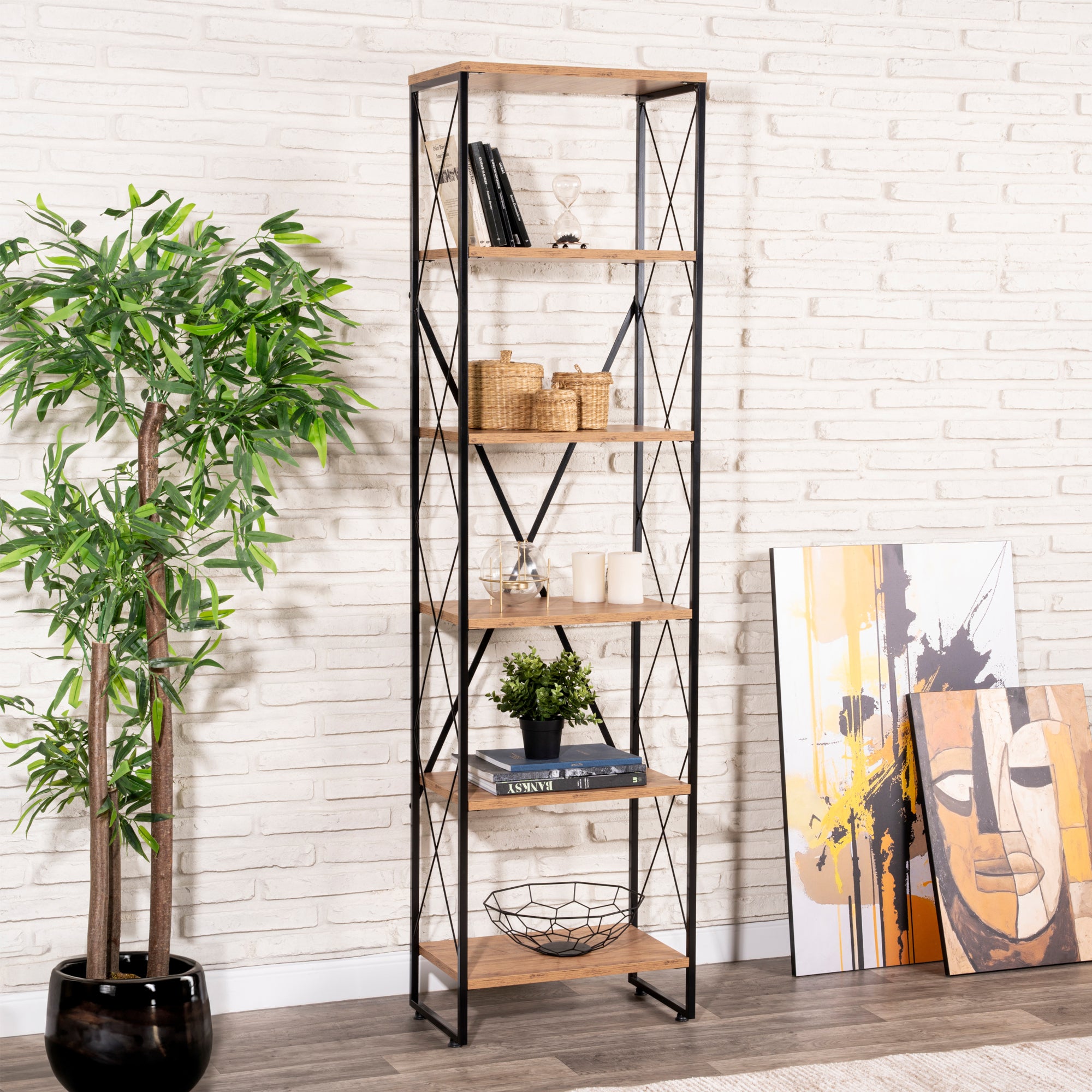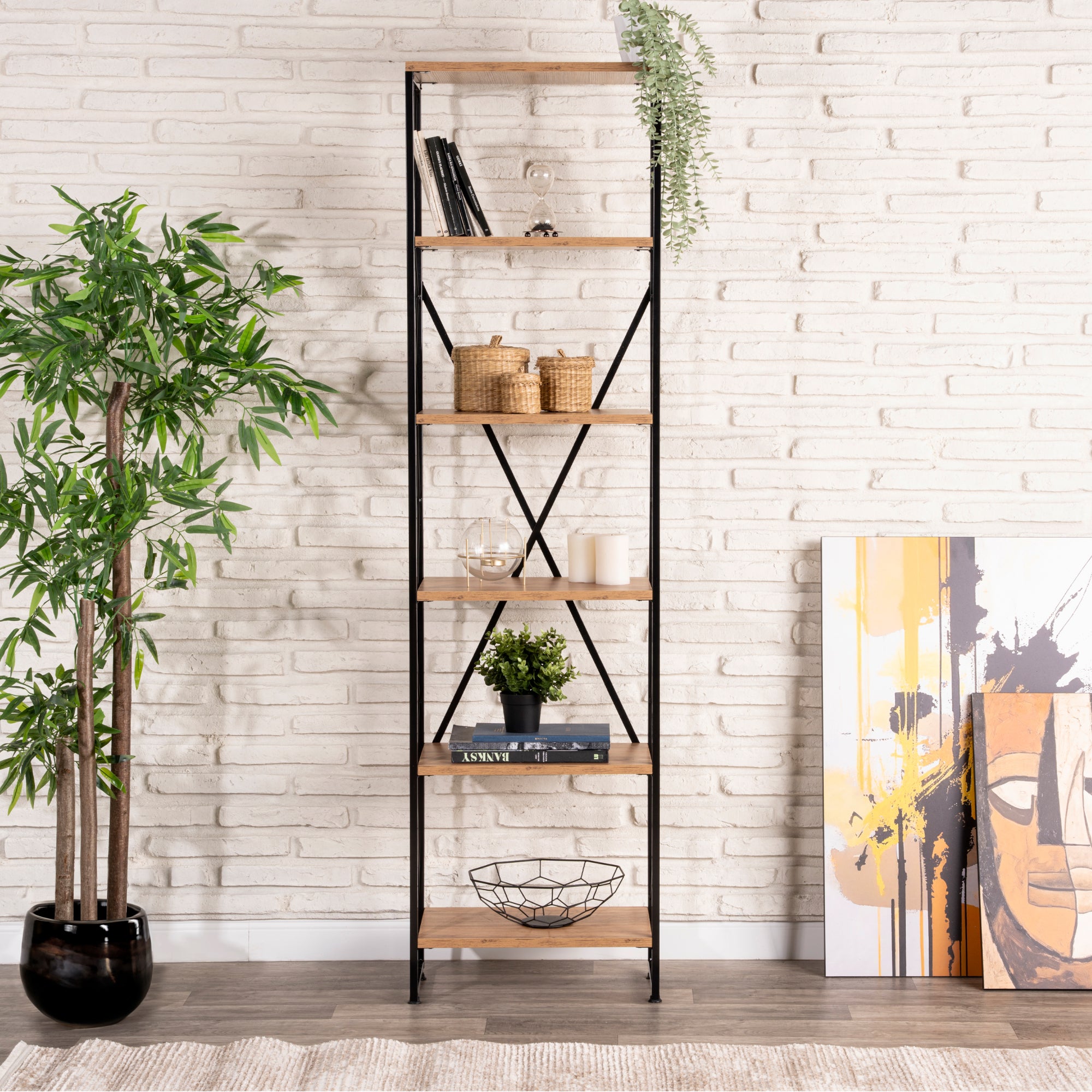 - Stilvolles und zeitloses Standregal mit fünf Ablagefächern