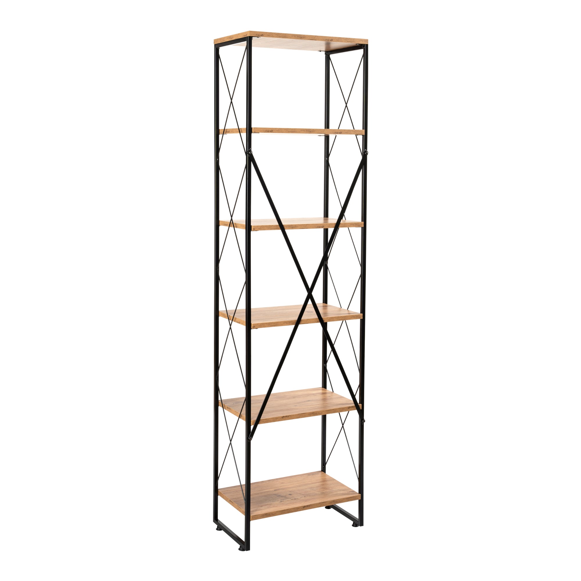 Dieses stilvolle und praktische Standregal verfügt über insgesamt fünf Ablagefächer. Es eignet sich ideal zum Verstauen von Büchern, Dekoartikeln und anderen Objekten.