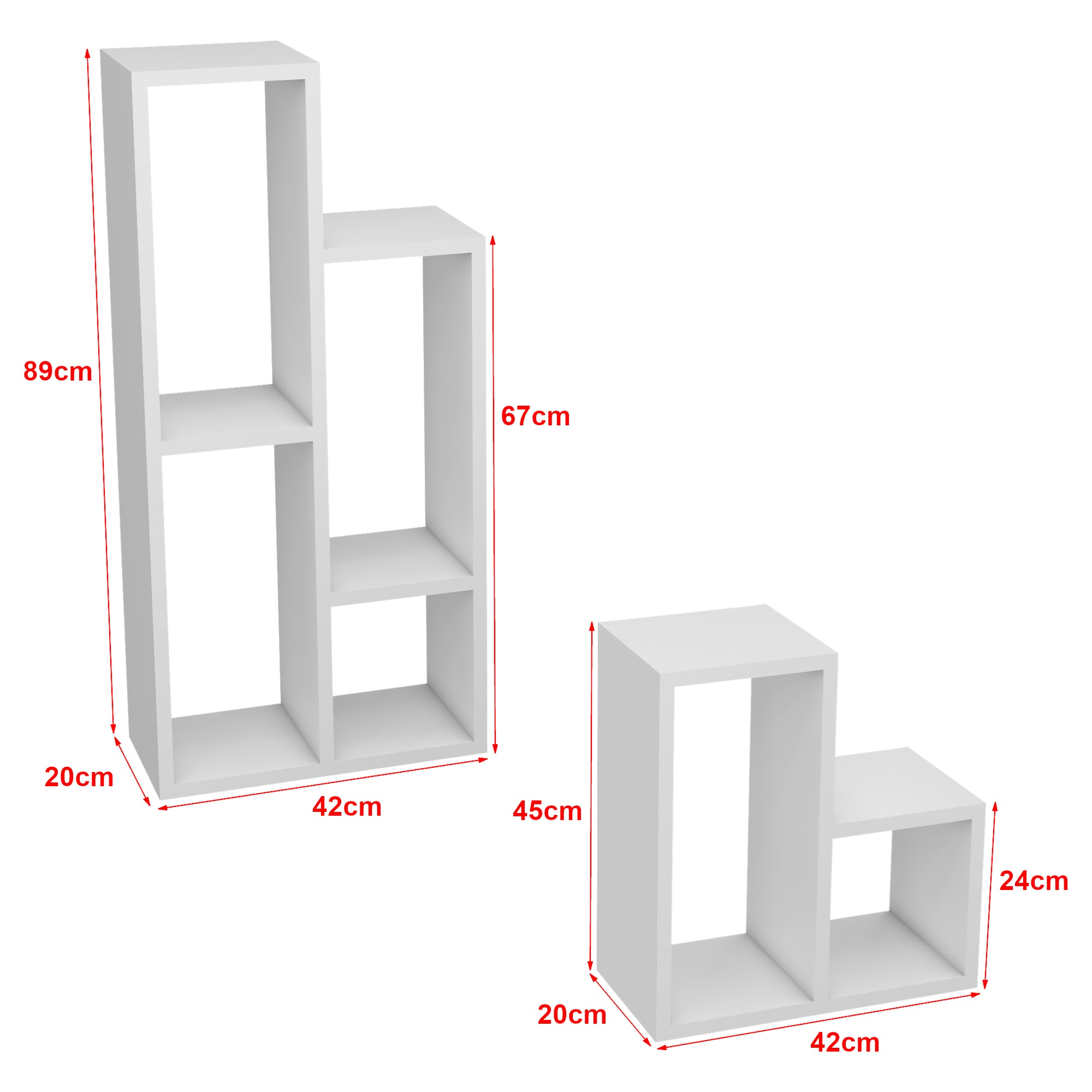 - Großes Regal (HxBxT): 67 - 89 x 42 x 20 cm