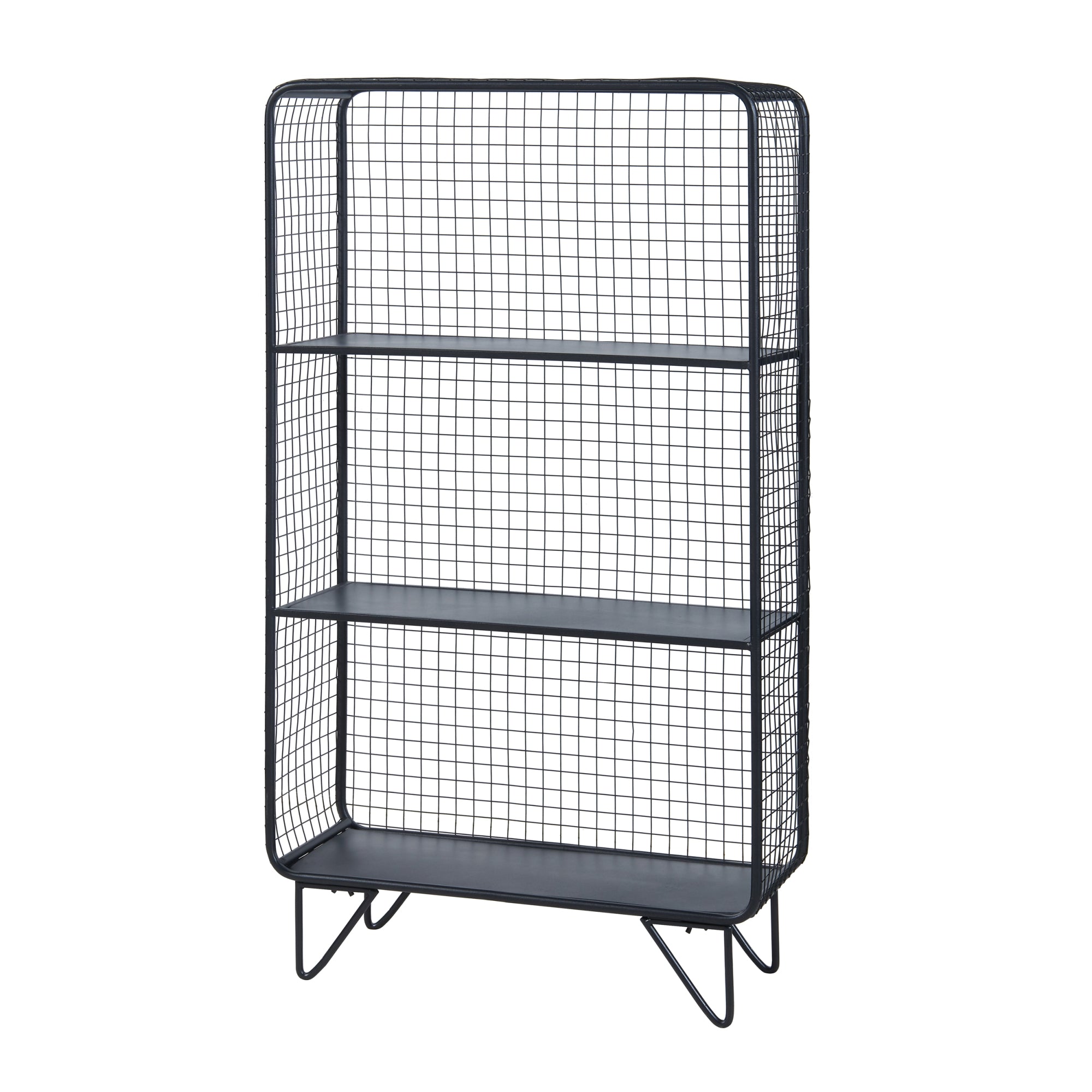 Dieses stilvolle und praktische Gitterregal verfügt über insgesamt drei Ablageflächen und eignet sich ideal zur Präsentation von sämtlichen Gegenständen. Es ist vielseitig einsetzbar und passt perfekt in verschiedene Räume, sei es im Wohnzimmer, Schlafzimmer oder Büro.