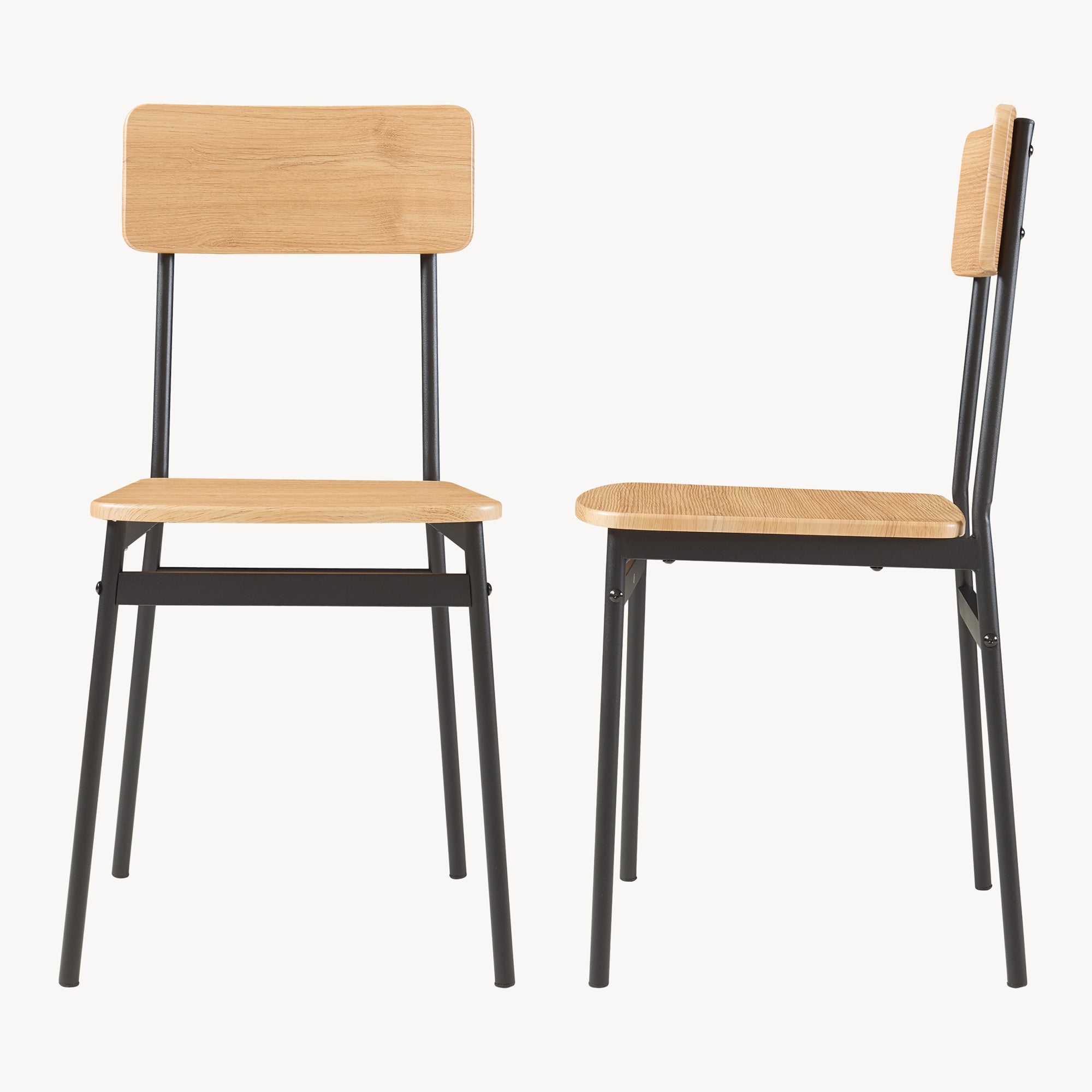 - Sitzfläche und Rückenlehne: Eicheoptik