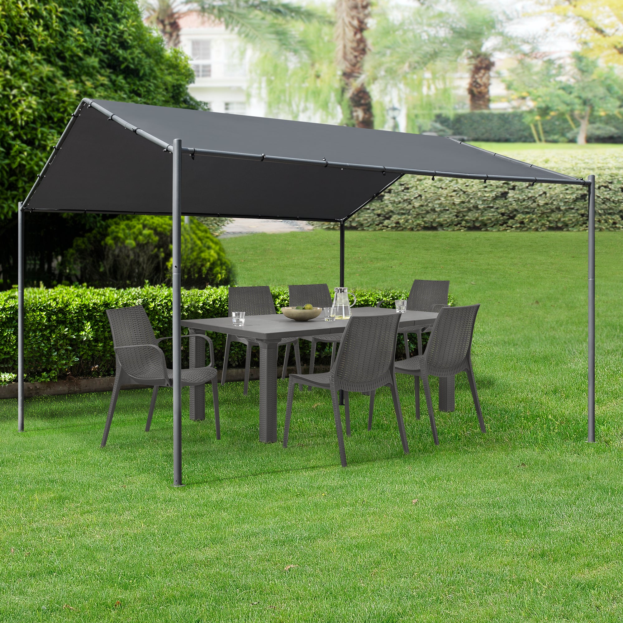 Der Pavillon überzeugt durch sein zeitloses Aussehen und bietet Ihnen einen idealen Sonnenschutz in Ihrem Garten. Er kann als Überdachung Ihrer Terrassenmöbel dienen und ist außerdem perfekt geeignet für Gartenpartys.