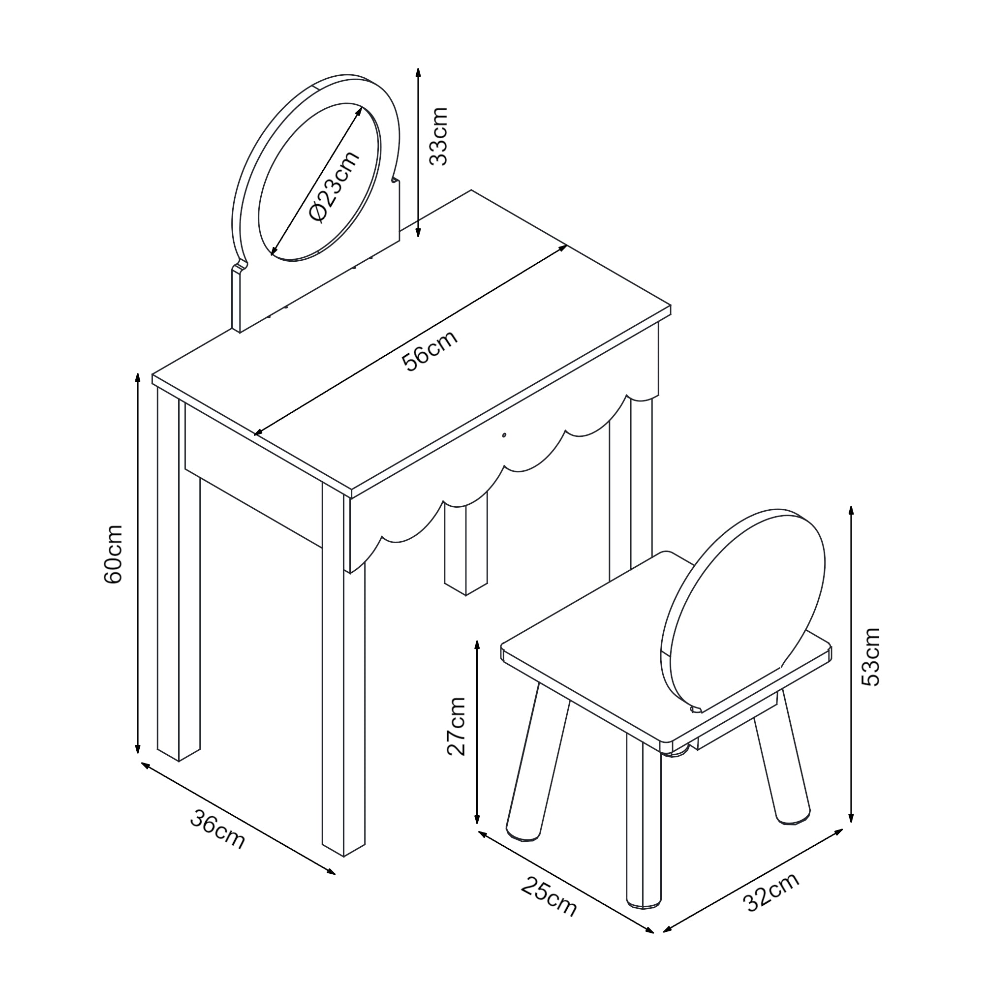 - Schminktisch Gesamt (HxBxT): 93 x 56 x 36 cm