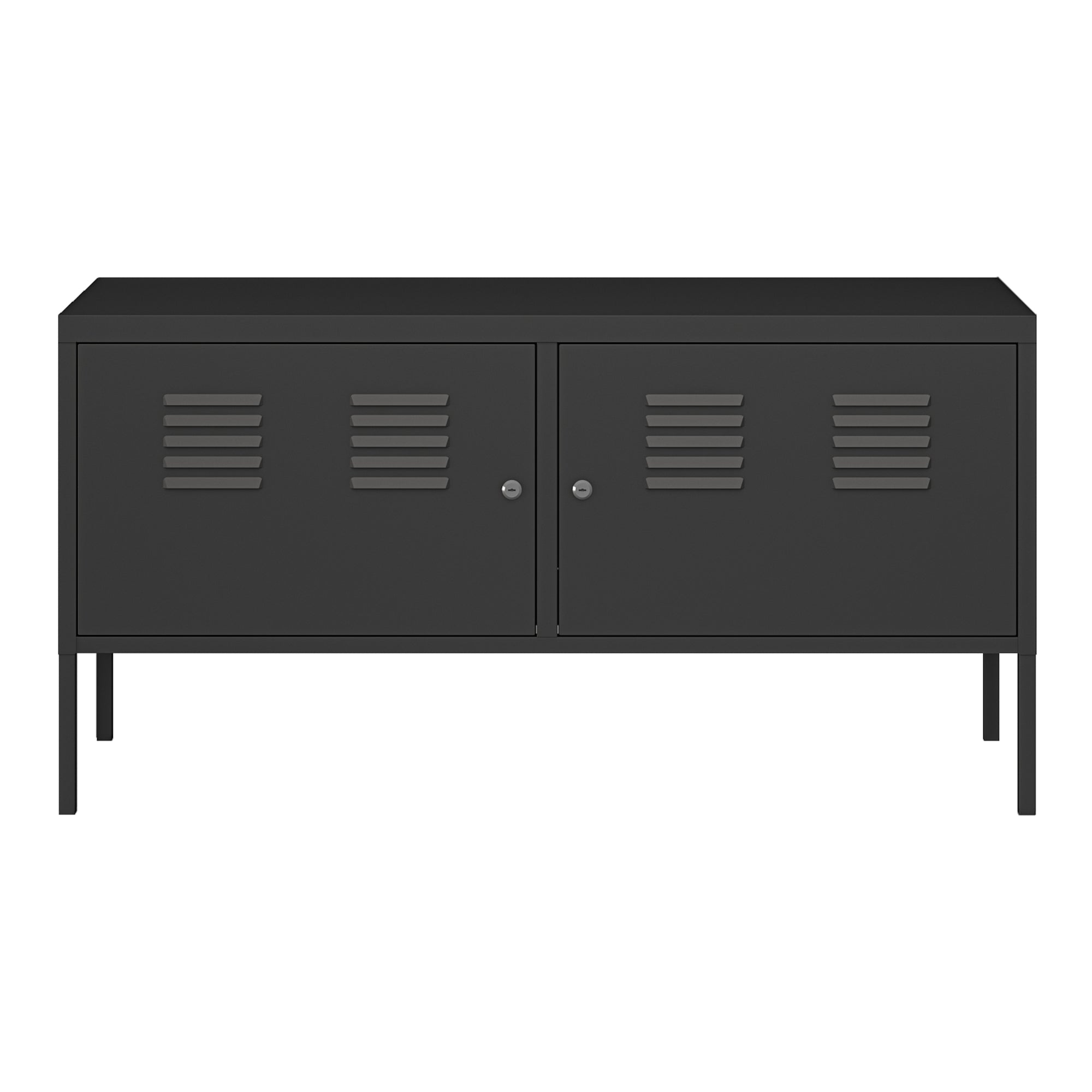 Integrierte Lüftungsschlitze an den Türen fördern die Luftzirkulation, was besonders bei der Lagerung von technischen Geräten vorteilhaft ist. Zudem sorgen die Kabeldurchlässe auf dem Boden für eine ordentliche Kabelführung.