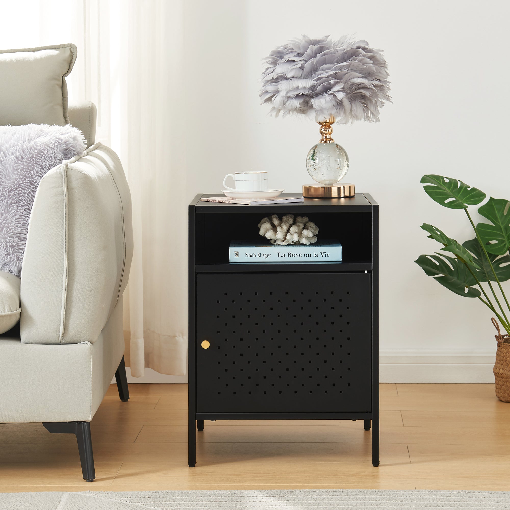 Der Nachtschrank ist ein stilvolles und praktisches Möbelstück, das eine perfekte Ergänzung für Ihr Schlafzimmer darstellt. Mit seiner luftdurchlässigen Schranktür und dem offenen Ablagefach ist dieser Nachtschrank ideal, um Ihre persönlichen Gegenstände sicher und ordentlich aufzubewahren.