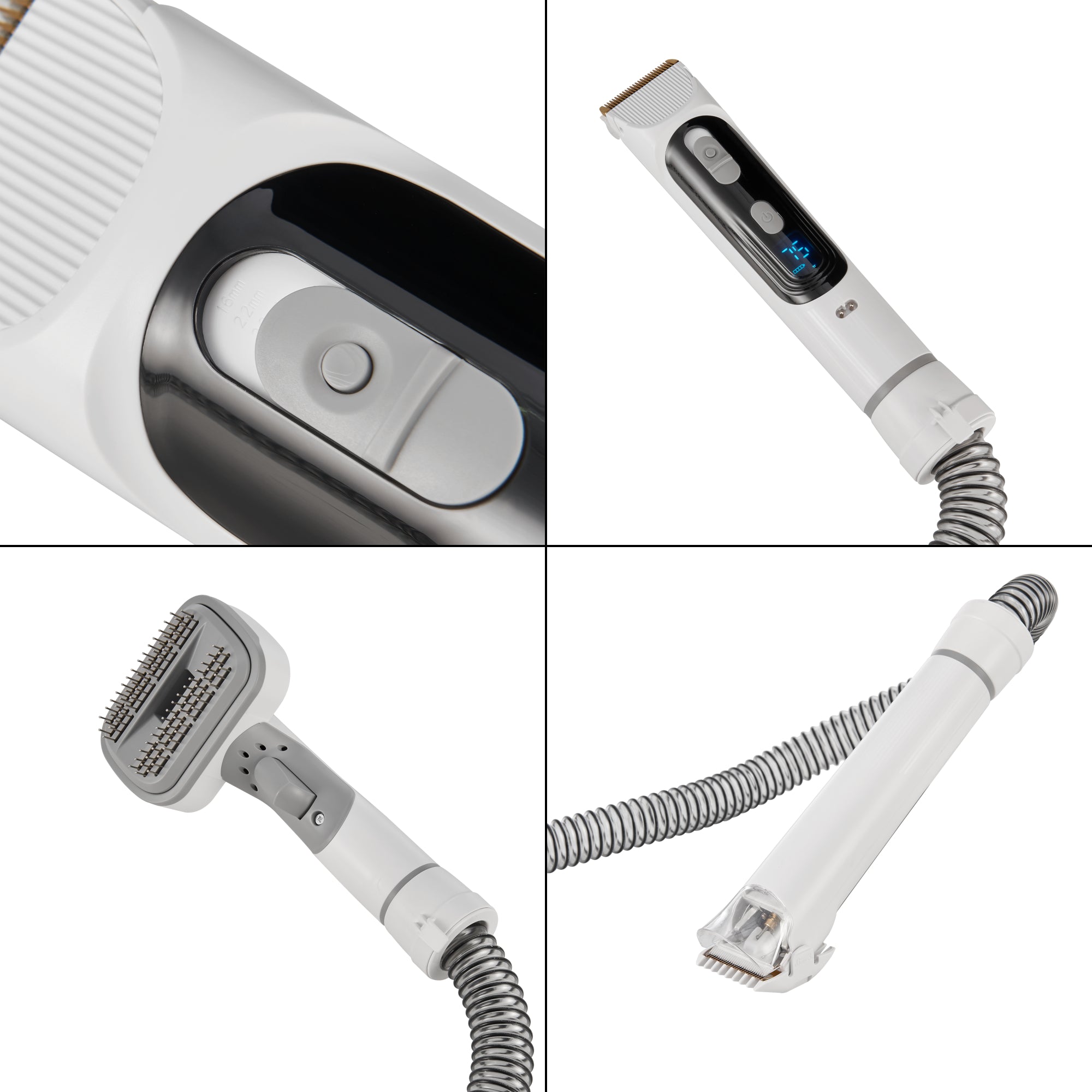 Dieses multifunktionale Gerät kombiniert die Präzision einer professionellen Schermaschine mit der Effizienz eines leistungsstarken Staubsaugers. Die elektrische Schermaschine ermöglicht es Ihnen, das Fell Ihres Haustieres mühelos zu trimmen, während der Staubsauger dafür sorgt, dass das getrimmte Haar sofort aufgenommen wird, sodass Ihr Zuhause sauber bleibt. Verschiedene Schnittkämme sorgen für perfekte Ergebnisse bei jeder Felllänge.