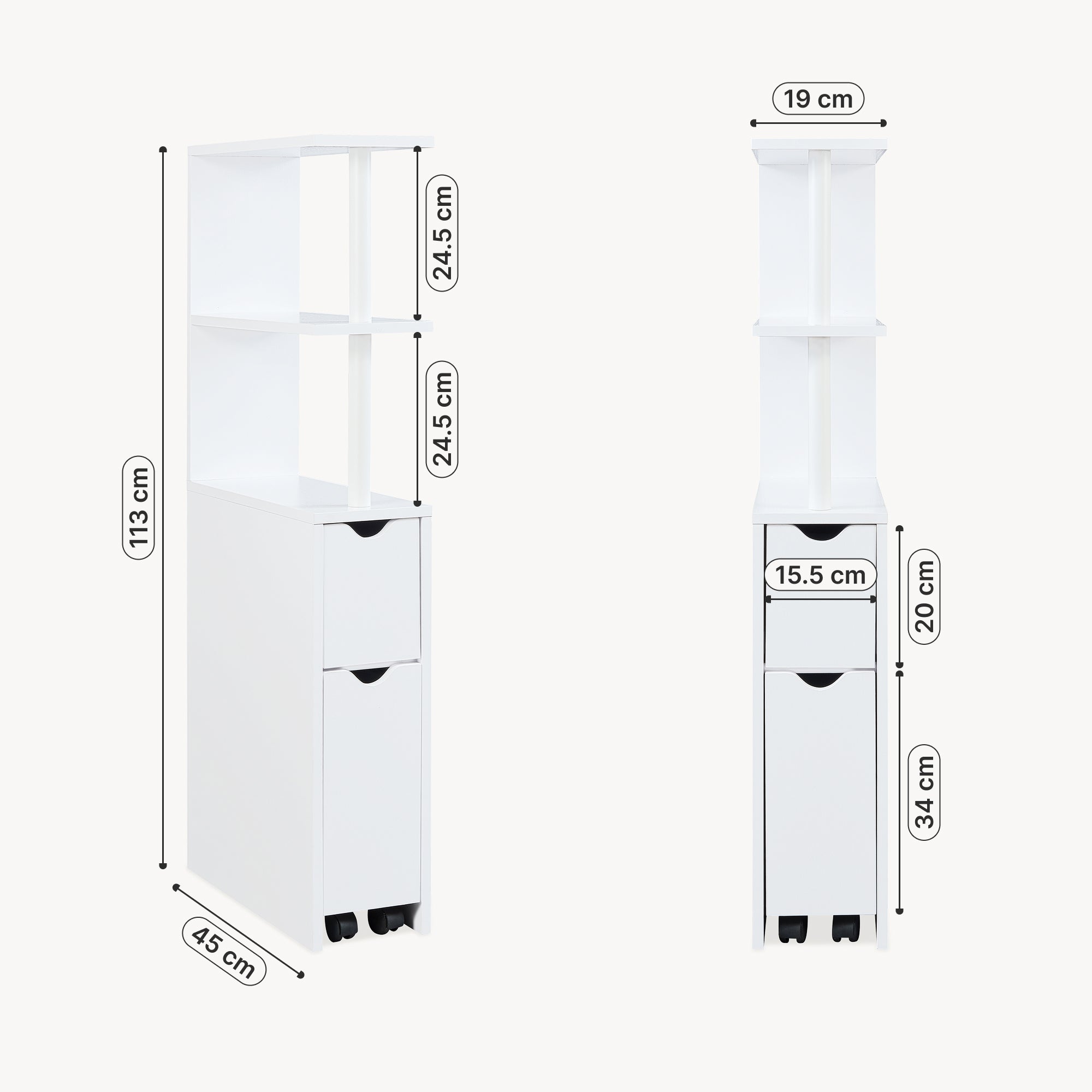 Dieses Nischenregal ist vielseitig nutzbar und unterstützt Sie im Bad, Kinderzimmer oder Küche dabei, Ordnung zu schaffen. Durch die schmale Bauweise eignet es sich ideal für Nischen und kleine Räume, in denen jeder Zentimeter zählt.