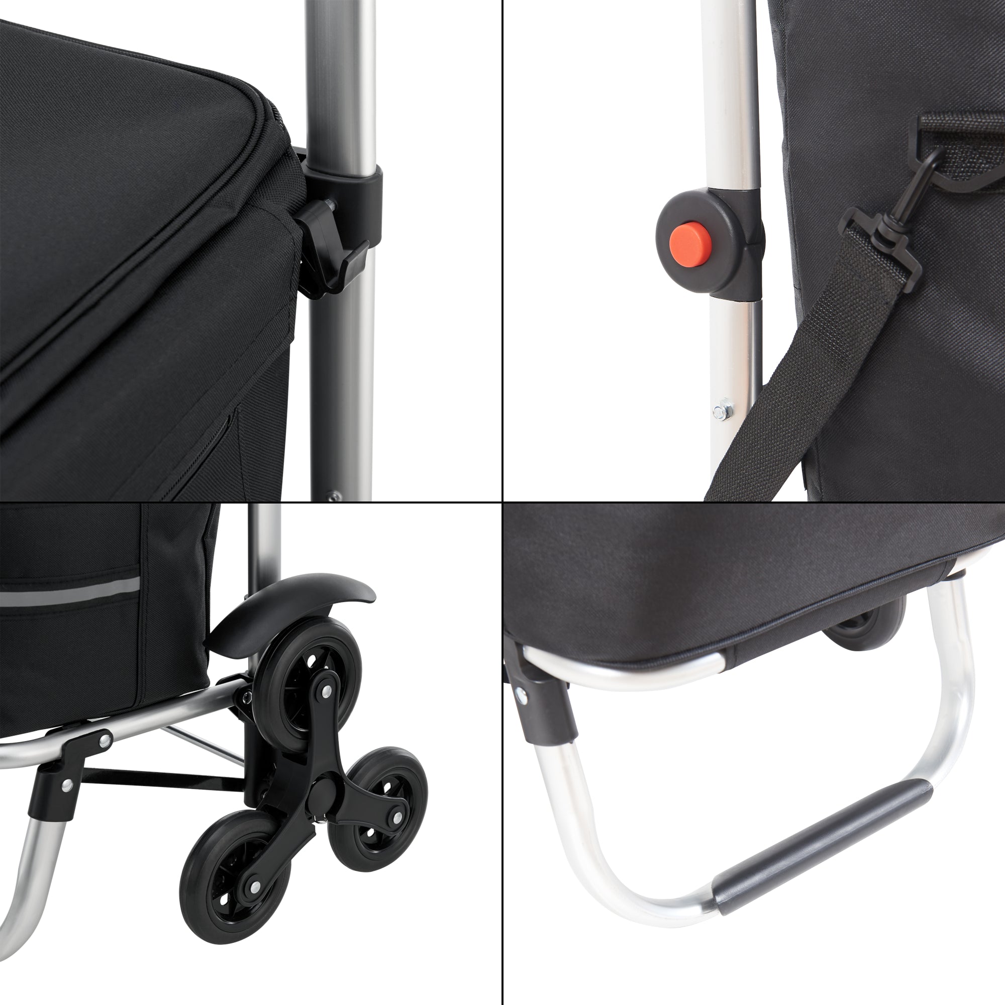 Der praktische und zusammenklappbare Einkaufstrolley ist die ideale Lösung für jeden Haushalt und erleichtert Ihren Einkauf erheblich. Mit seinem leichten Aluminiumgestell und dem rutschfesten Griff bietet er eine sichere und bequeme Möglichkeit, Ihre Einkäufe und Reisen zu bewältigen.