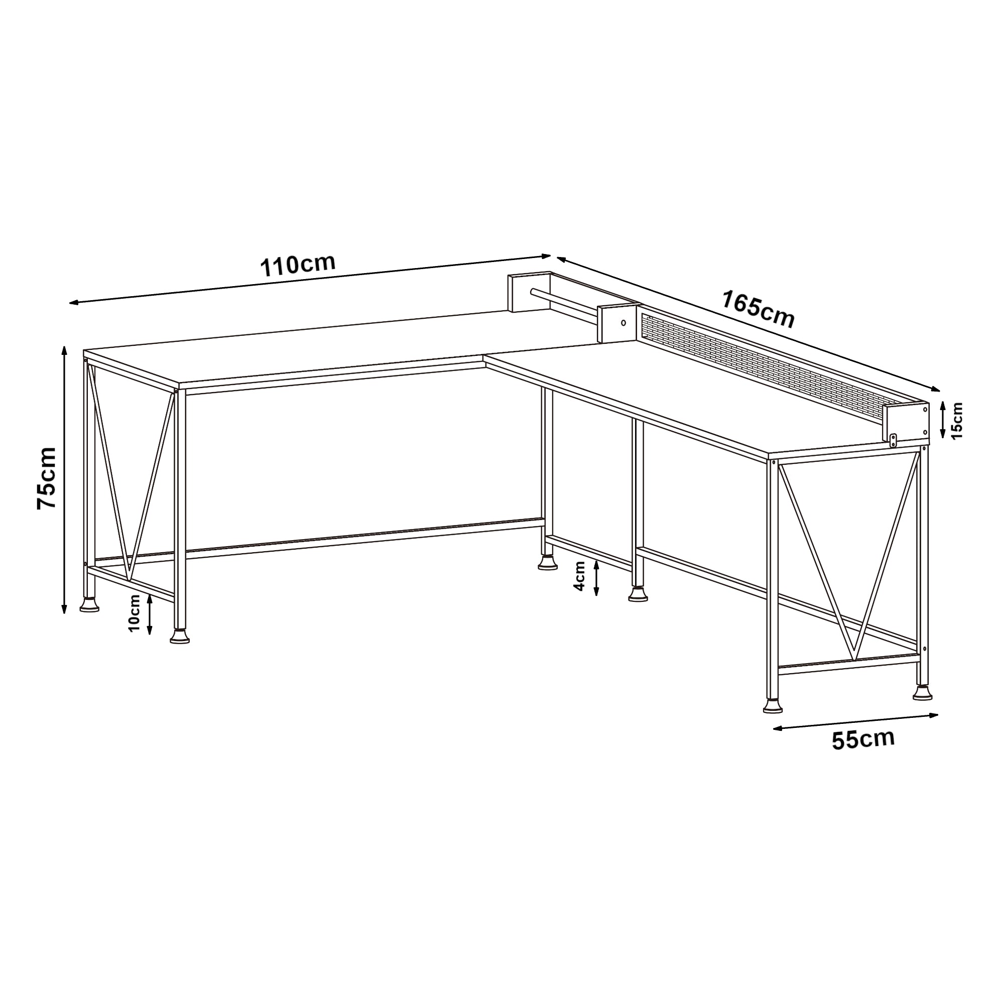 Der elegante und vielseitige Schreibtisch eignet sich perfekt für Ihr Büro, Ihr Homeoffice oder Ihr Arbeitszimmer. Mit seiner zeitlosen Gestaltung fügt sich der Ecktisch nahtlos in jede Einrichtung ein.