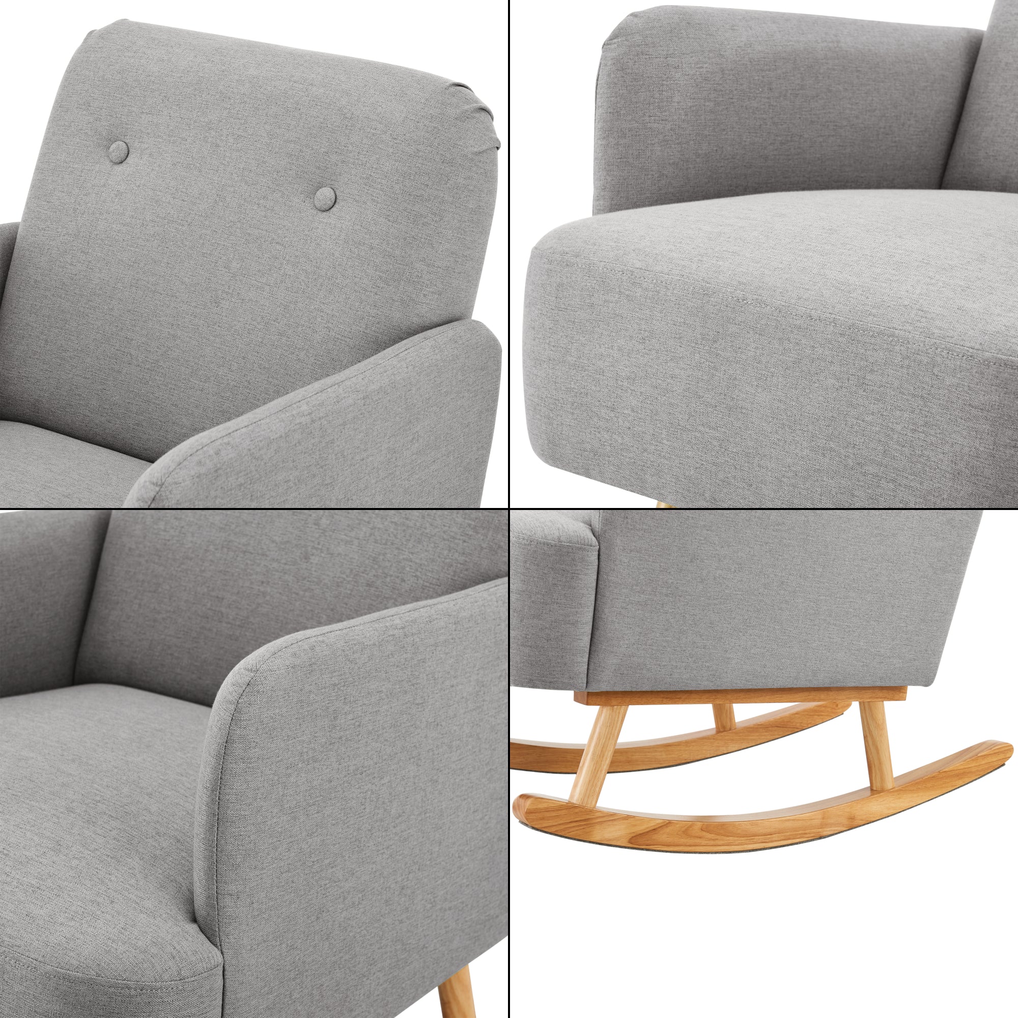 Gönnen Sie sich mit unserem Schaukelstuhl eine erholsame Auszeit in Ihrem Zuhause. Sein gepolstertes Design, kombiniert mit dem beruhigenden Schaukeln, wird sicherlich dazu beitragen, dass Sie sich entspannt fühlen und Ihren Wohnraum in eine Oase der Gemütlichkeit verwandeln.