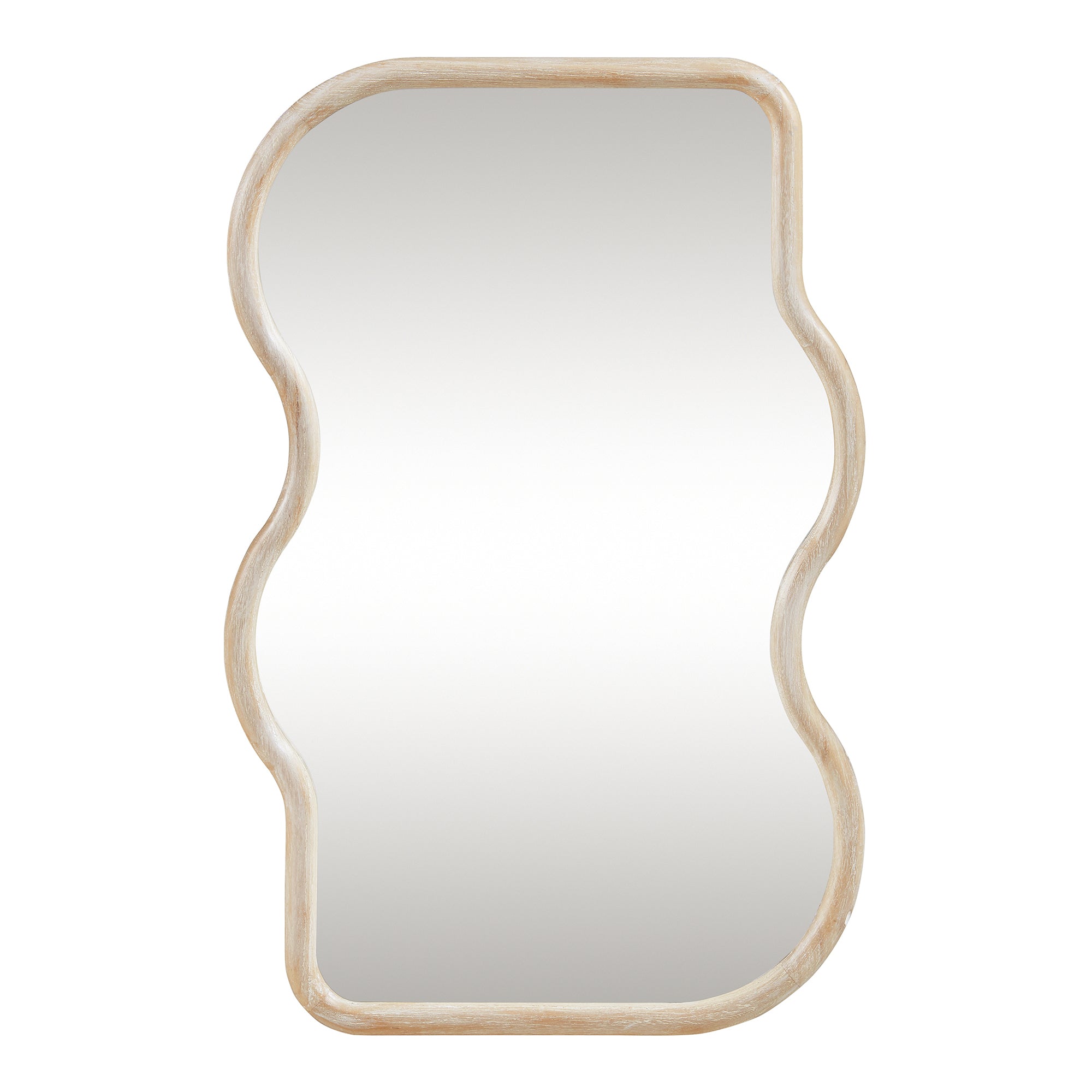 Dieser elegante Wandspiegel verbindet Funktionalität mit ästhetischem Design und wird so zu einem unverzichtbaren und zeitlosen Accessoire in jedem Zuhause. Sein stilvoller und ansprechender Rahmen in geschwungener Form fügt sich nahtlos in jede Raumgestaltung ein.