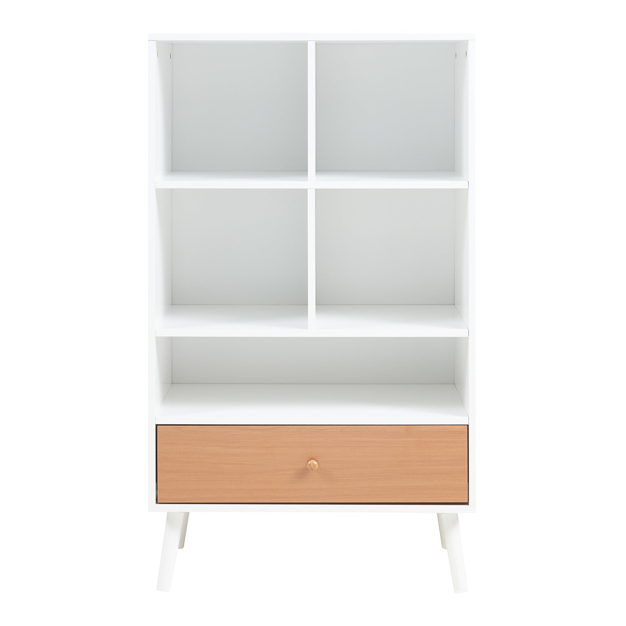 Die fünf offenen Regalfächer des Standregals bieten ausreichend Platz zum Verstauen von Büchern, Pflanzen und anderen persönlichen Schätzen. Durch diese offene Gestaltung sind Ihre Lieblingsgegenstände stets griffbereit und gleichzeitig ansprechend präsentiert. Die untere Schublade nimmt alles auf, was Sie ordentlich und geschützt verwahren möchten.