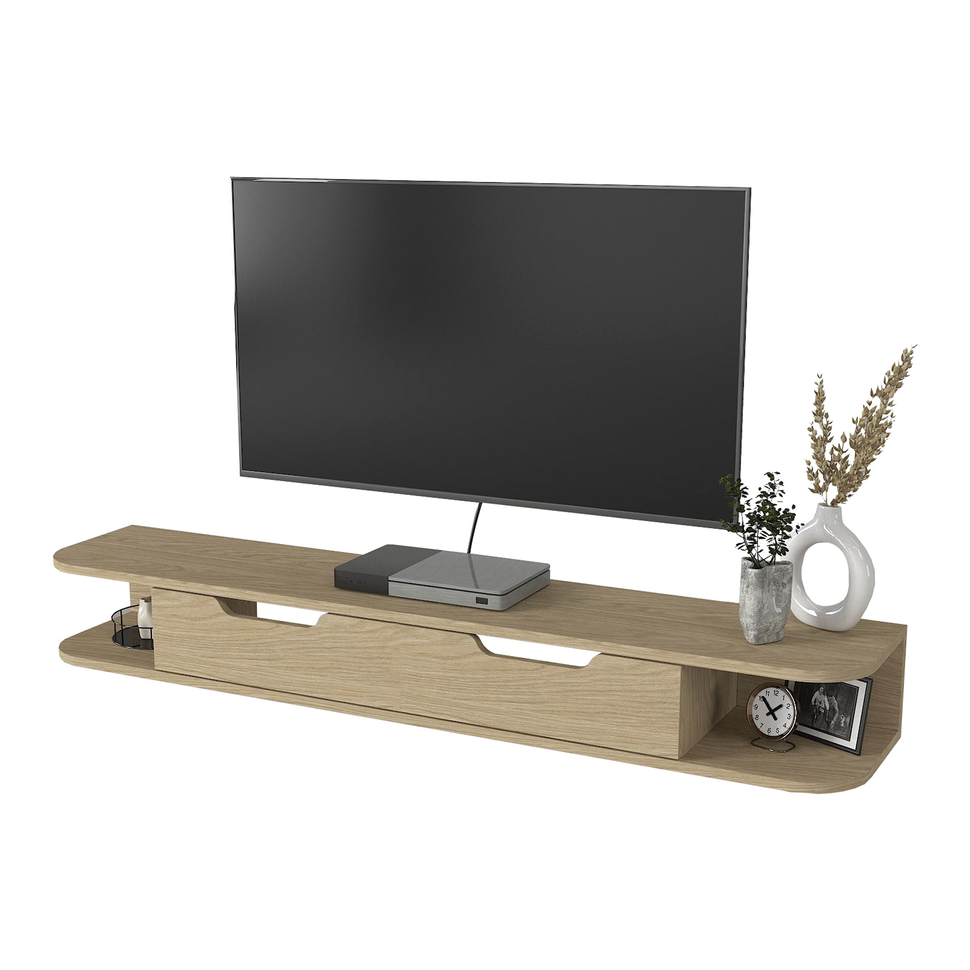 Das schwebende TV-Board eignet sich ideal, um Ihren Fernseher und alle damit verbundenen Geräte strukturiert und übersichtlich zu platzieren. Dank des zeitlosen Designs fügt es sich harmonisch in verschiedenste Wohnkonzepte ein.