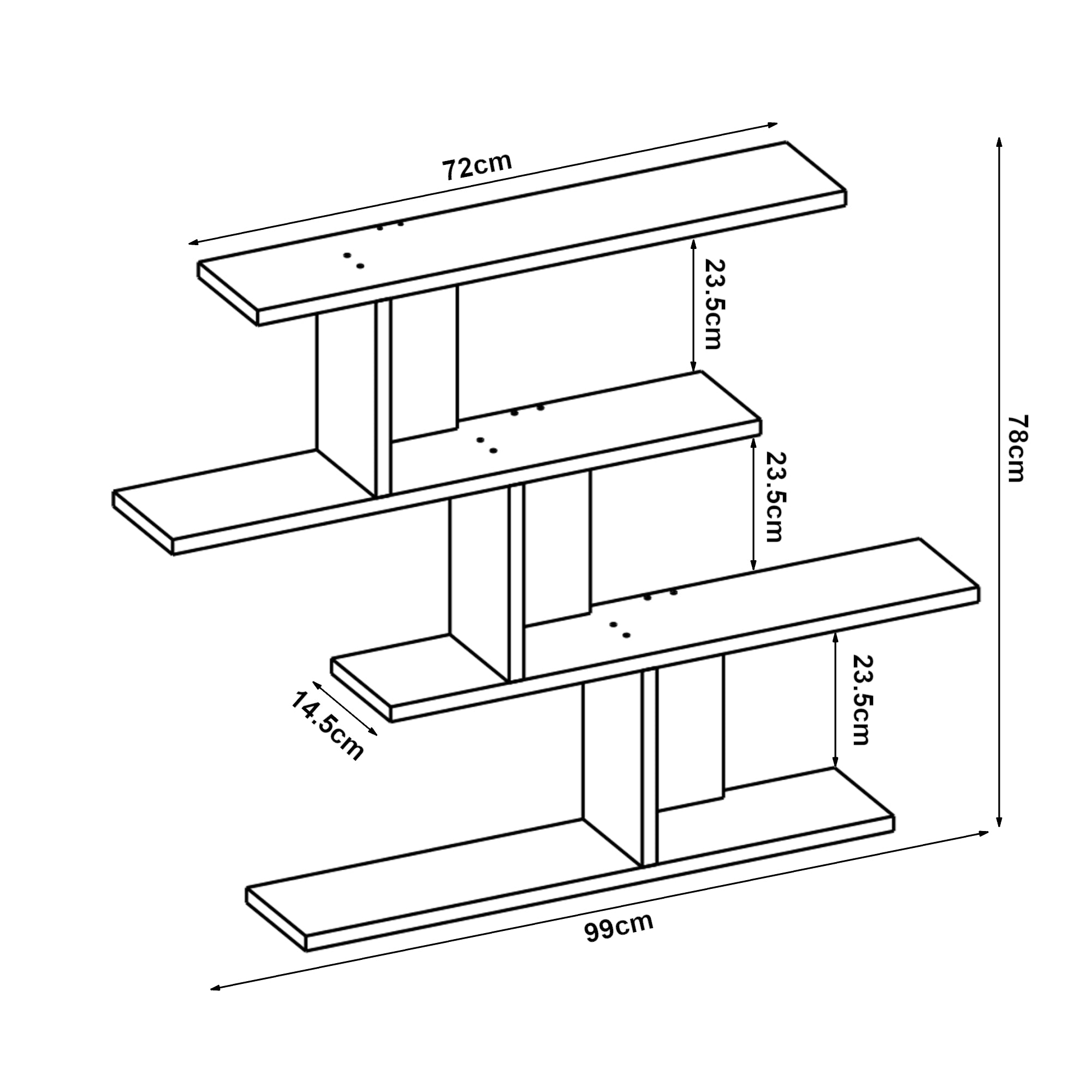 - Abstand zwischen den Ebenen: je 23,5 cm