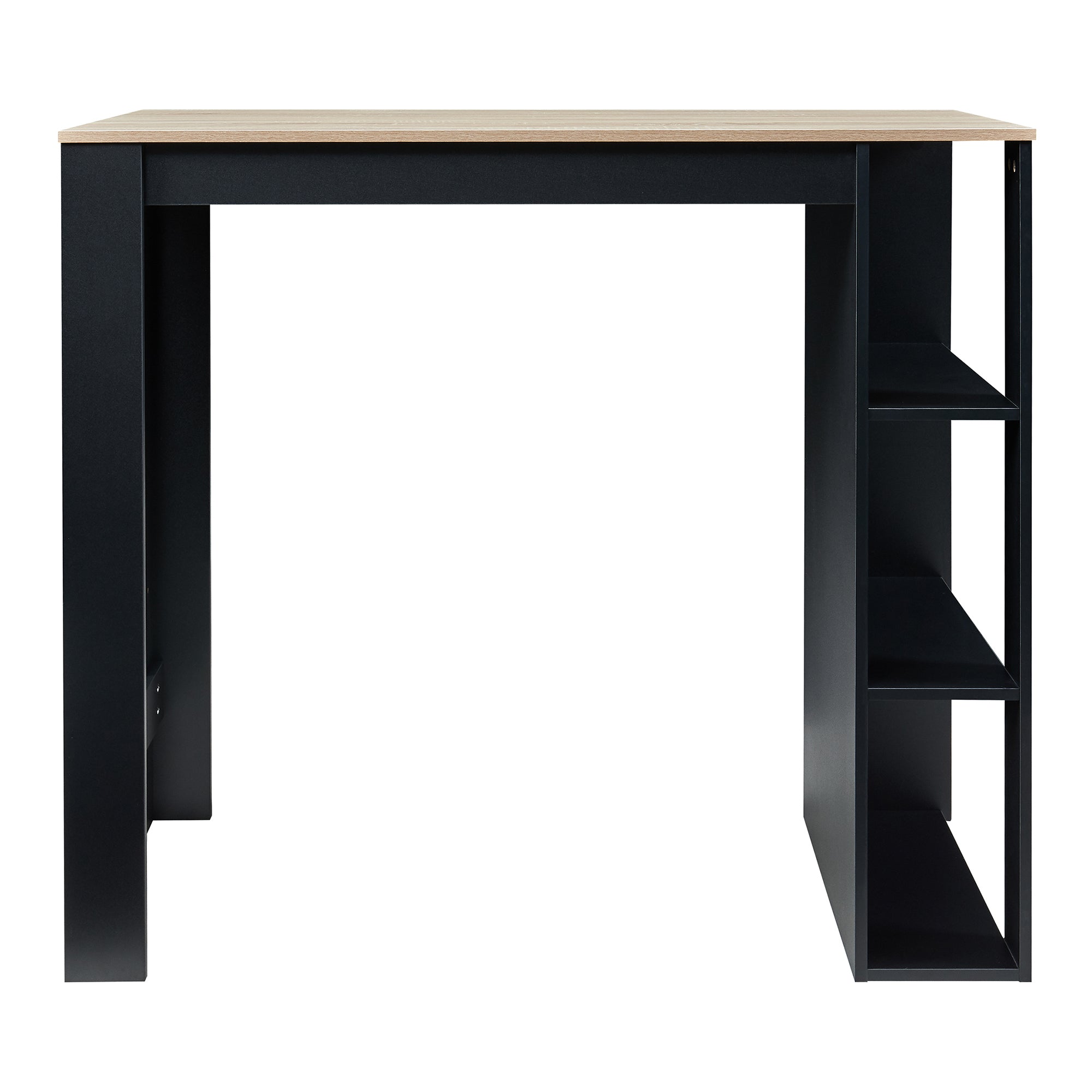 Die großzügige Tischplatte bietet ausreichend Platz für Speisen, Getränke oder Arbeitsunterlagen. Das seitlich integrierte Regal mit drei offenen Ablagefächern schafft zusätzlichen Stauraum – perfekt für Gläser, Flaschen oder Küchenutensilien, die stets griffbereit sein sollen.
