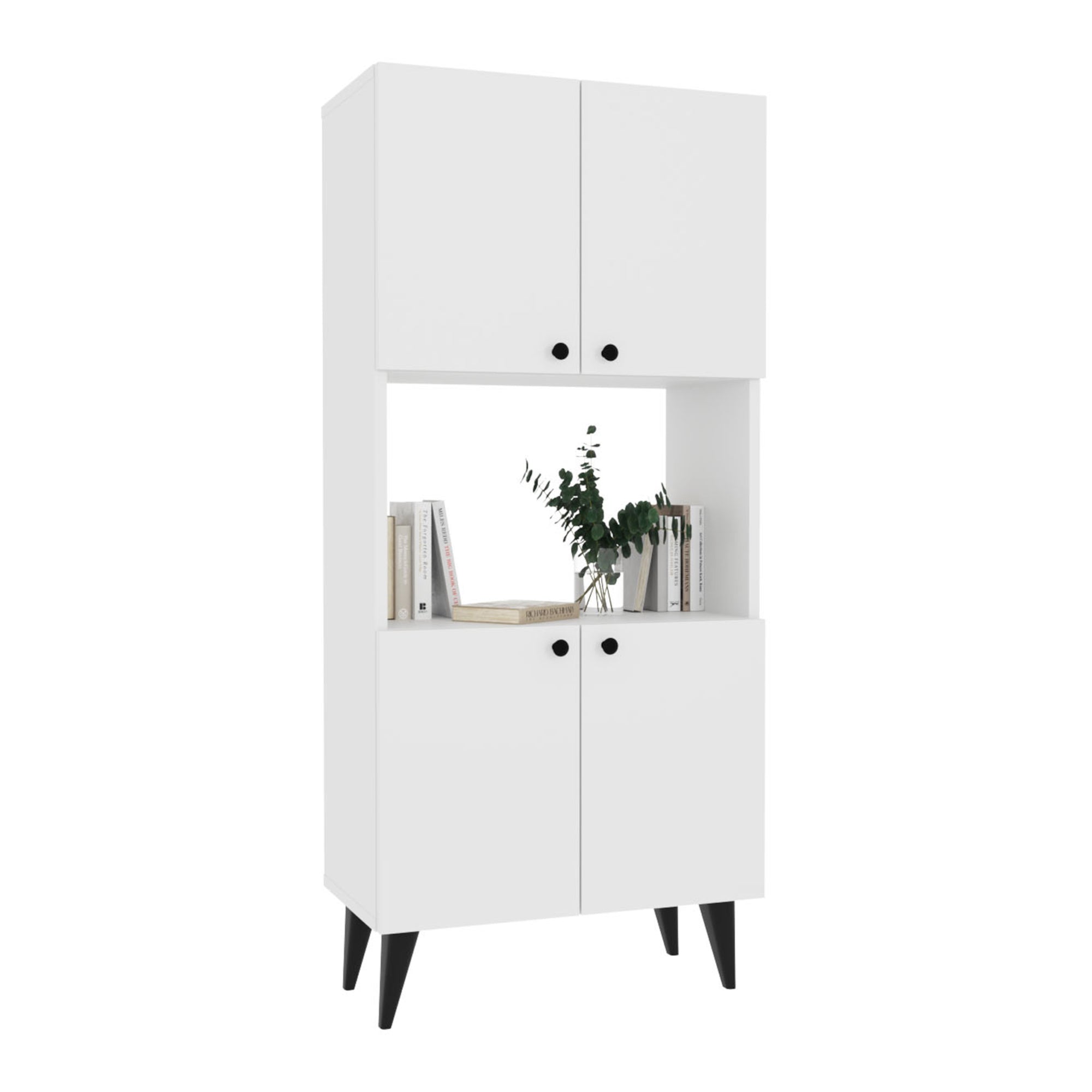 Der Beistellschrank ist vielseitig einsetzbar und kann in verschiedenen Bereichen wie im Wohnzimmer als Wohnzimmerschrank oder in der Küche als Küchenschrank genutzt werden. Außerdem kann der Schrank im Kinderzimmer als Aufbewahrungsort für Spielzeug und Bücher dienen. Das offene Ablagefach in der Mitte bietet einen zusätzlichen Stauraum für sämtliche Gegenstände.