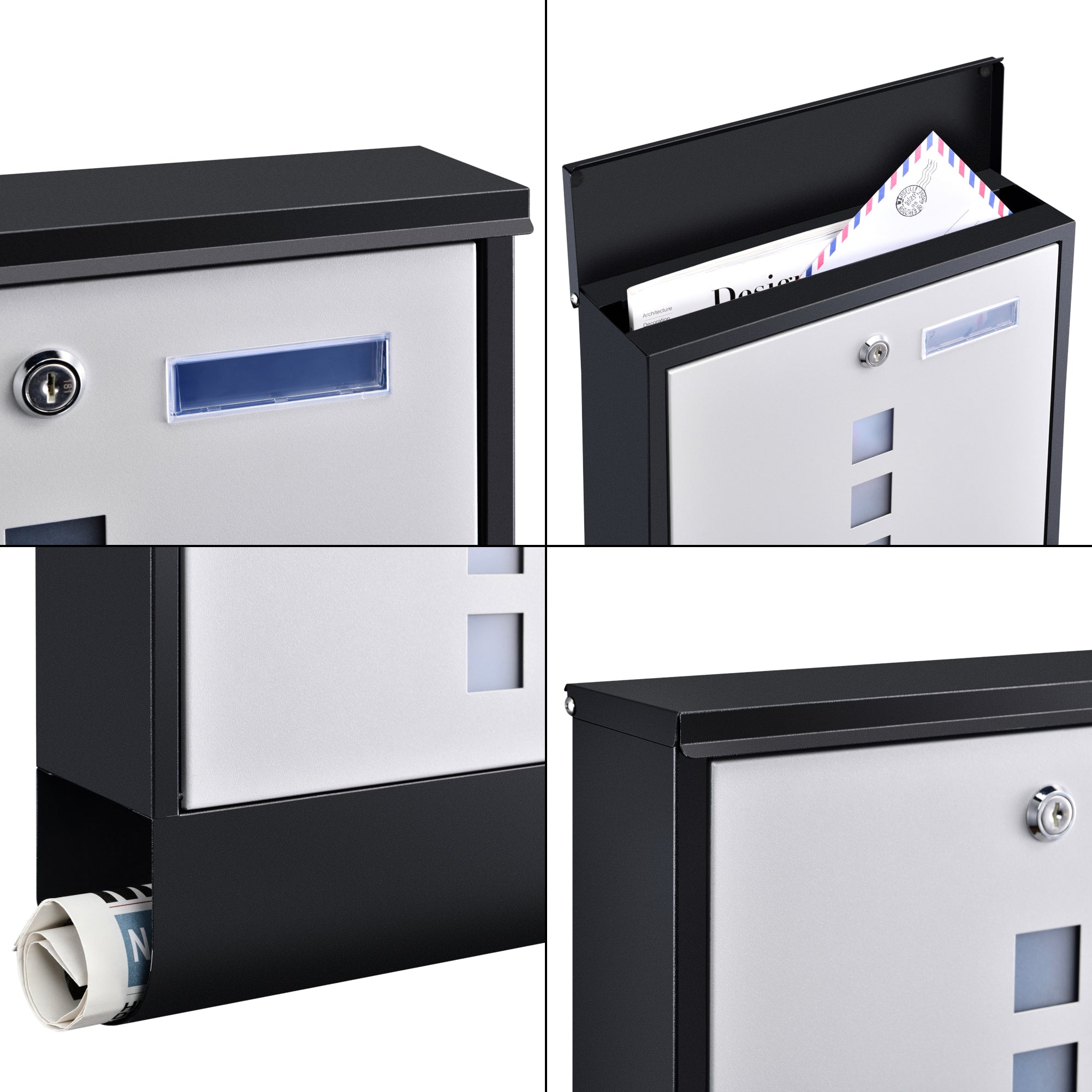 Dieser moderne Briefkasten ist ein echter Hingucker in Ihrem Außenbereich. Er verfügt über einen großen Einwurfschlitz und einer Zeitungsröhre an der Unterseite.