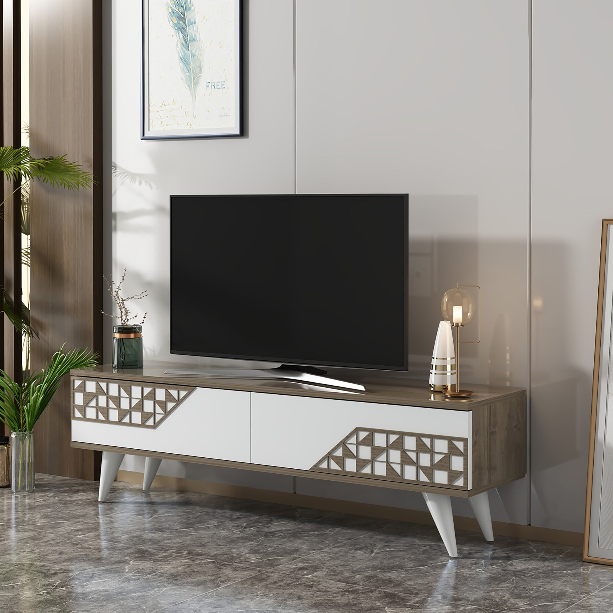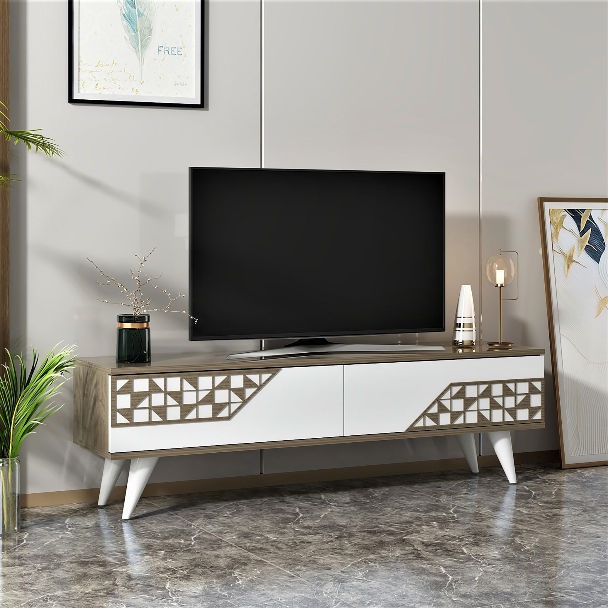 Dieser dekorative und praktische Fernsehtisch eignet sich perfekt für jeden Haushalt.