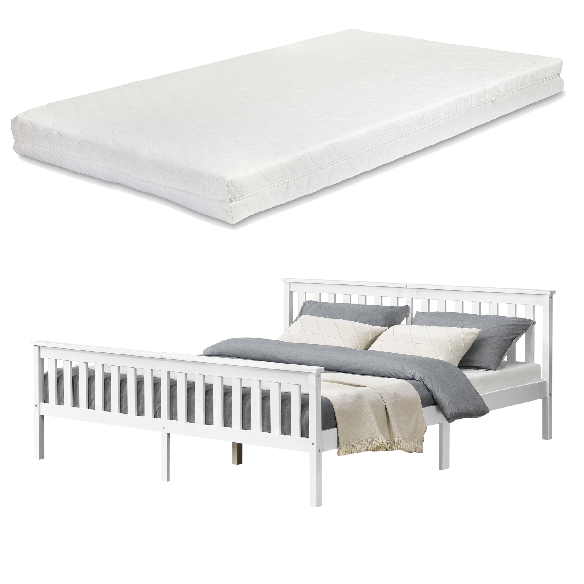 Die Matratze wird separat verschickt. Somit kann sie ggf. früher oder später als das Bett eintreffen.