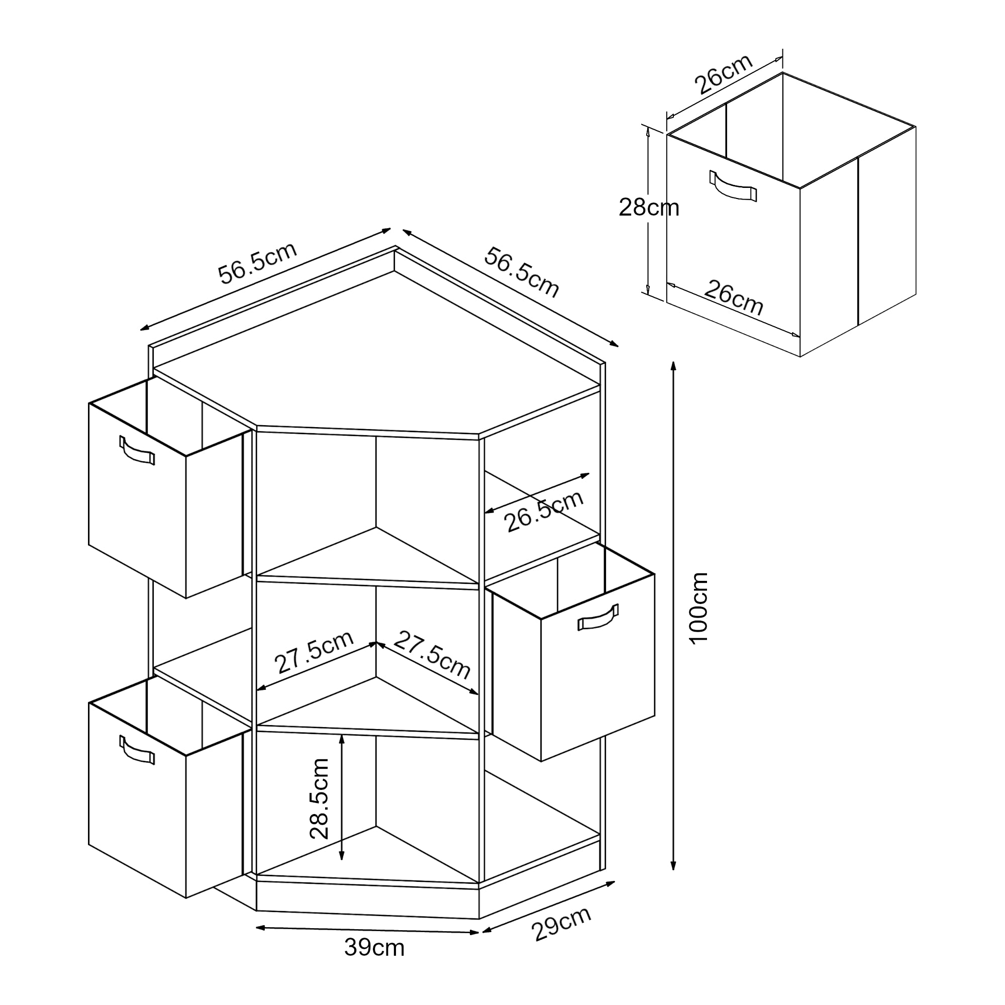 Mit diesem Eckregal wird das Verstauen von Spielzeug, Büchern und Bastelmaterial zum Kinderspiel. Es hilft nicht nur dabei, das Kinderzimmer aufgeräumt zu halten, sondern fördert auch die Selbstständigkeit der Kinder, indem sie lernen, ihre Sachen an einem festen Platz zu organisieren.