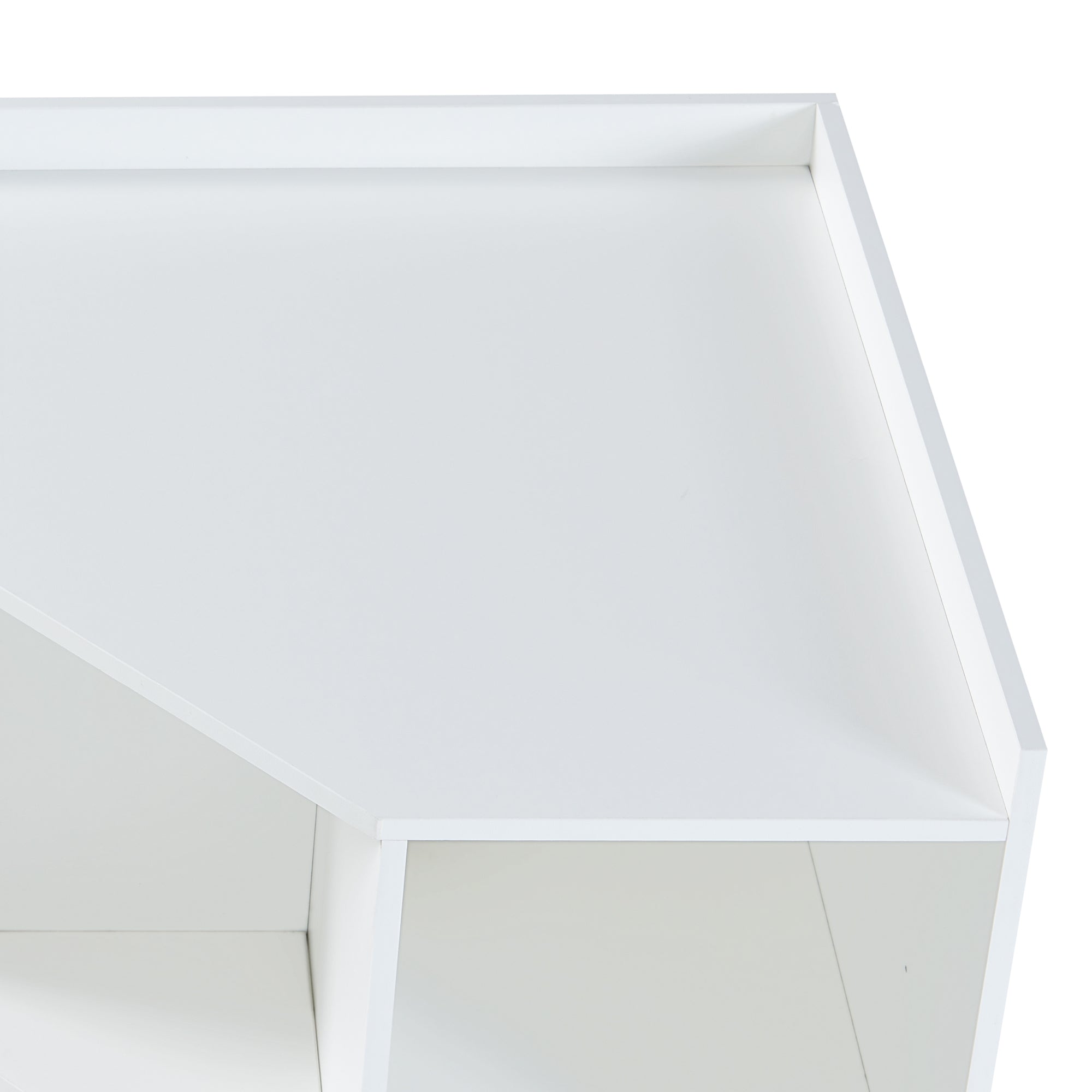 Dieses charmante Eckregal ist eine ideale Ergänzung für jedes Kinderzimmer. Mit seinem klaren, weißen Finish und der smarten, platzsparenden Eckschnitt-Form bietet es eine moderne und attraktive Option für die Aufbewahrung.