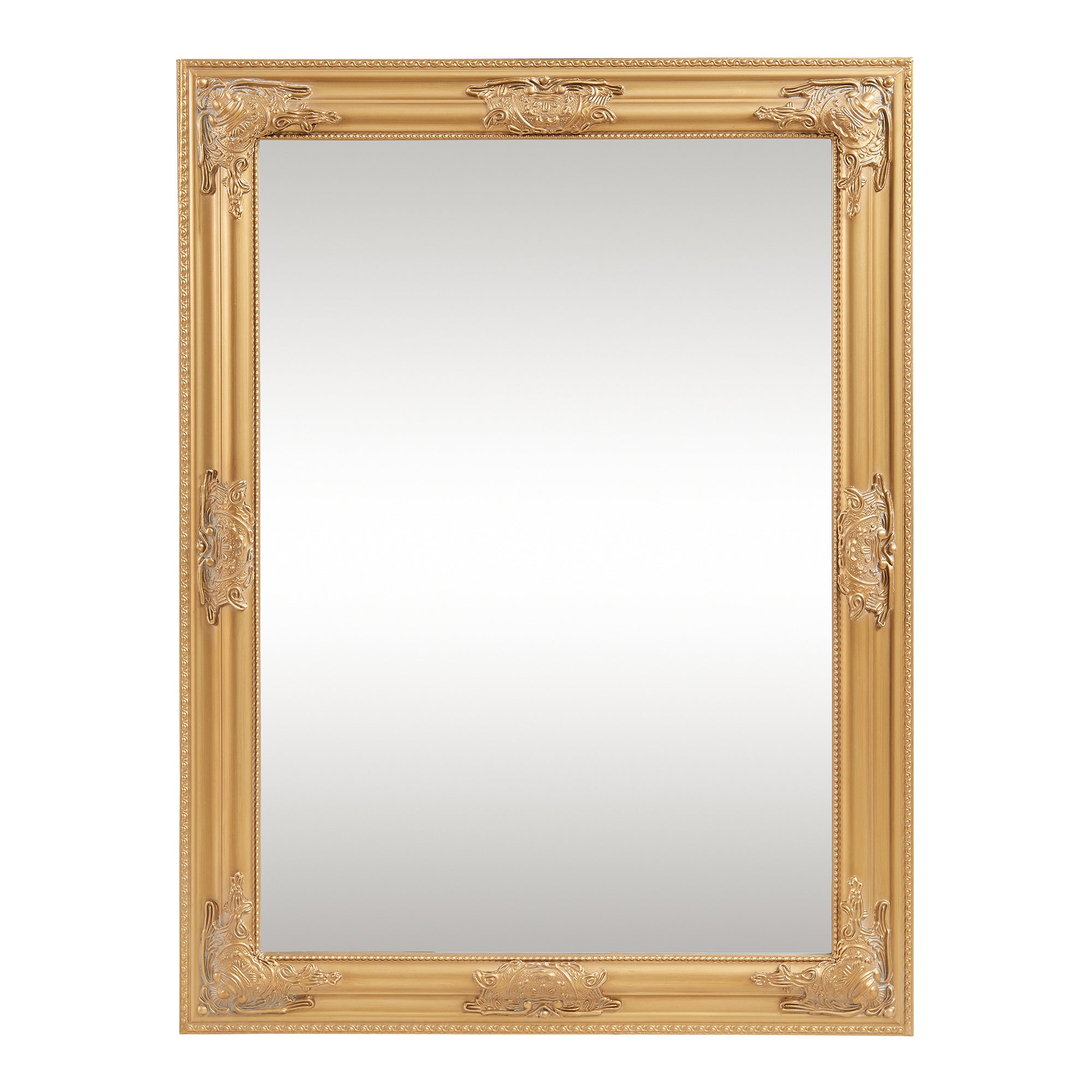 Dieser elegante Wandspiegel verbindet Funktionalität mit ästhetischem Design und wird so zu einem unverzichtbaren und zeitlosen Accessoire in jedem Zuhause. Sein stilvoller Rahmen ist mit detailreichen Ornamenten im Barockstil verziert und fügt sich nahtlos in jede Raumgestaltung ein.